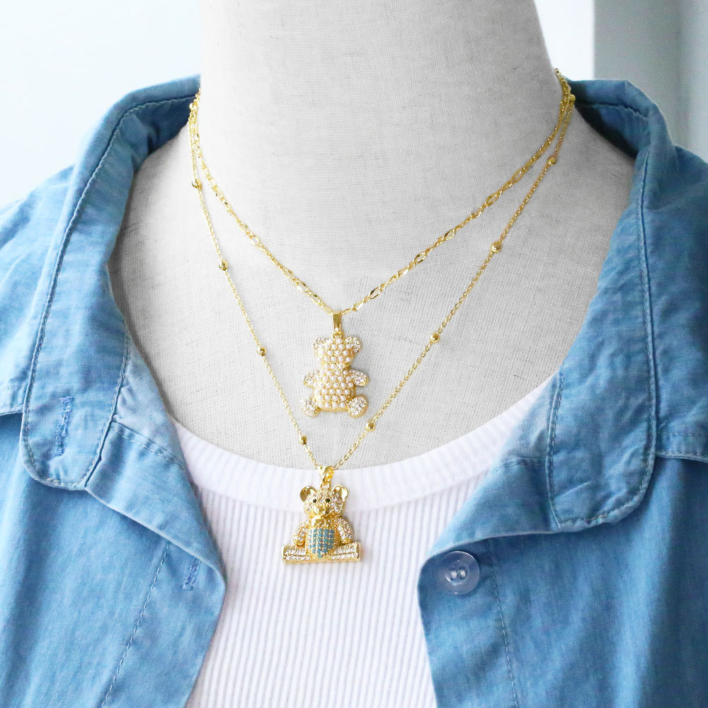 Clearance European and American jewelry cute bear pendant necklace female niche clavicle chain versatile necklace nkv23