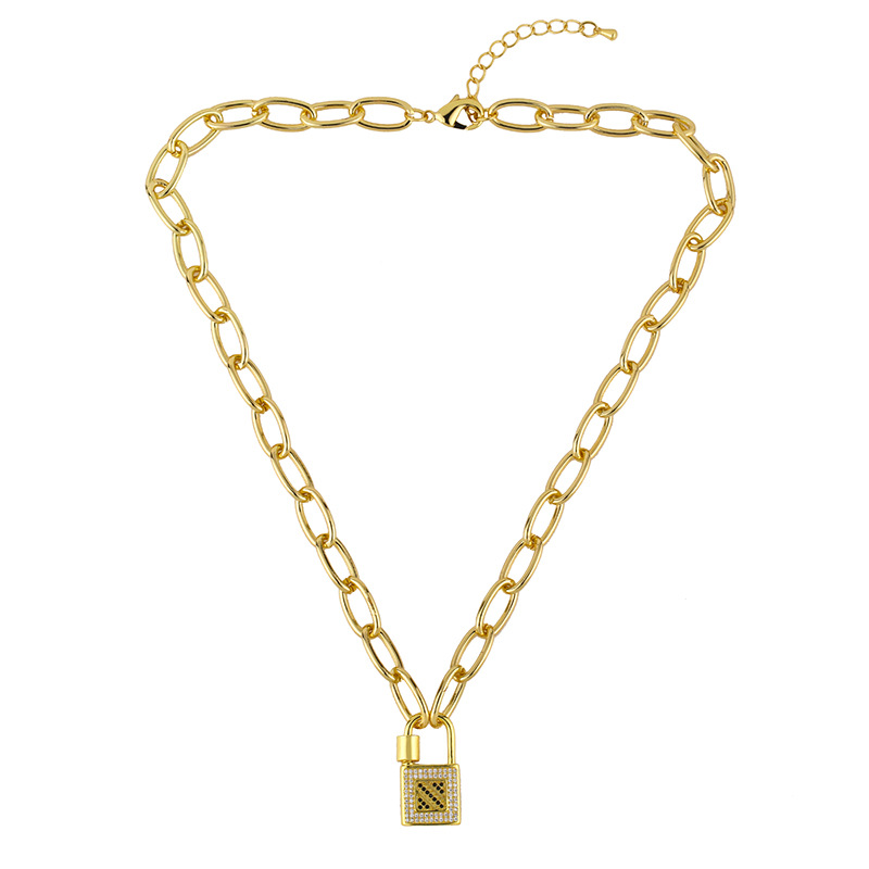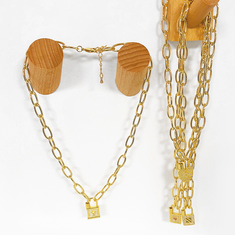 Clearance European and American jewelry fashion all-match lock necklace women's thick chain clavicle chain simple pendant necklace nkt17