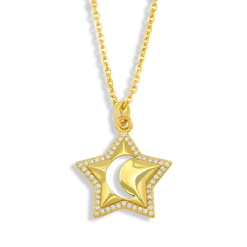 Clearance European and American jewelry geometric creative star moon necklace net celebrity heart-shaped necklace female nku16