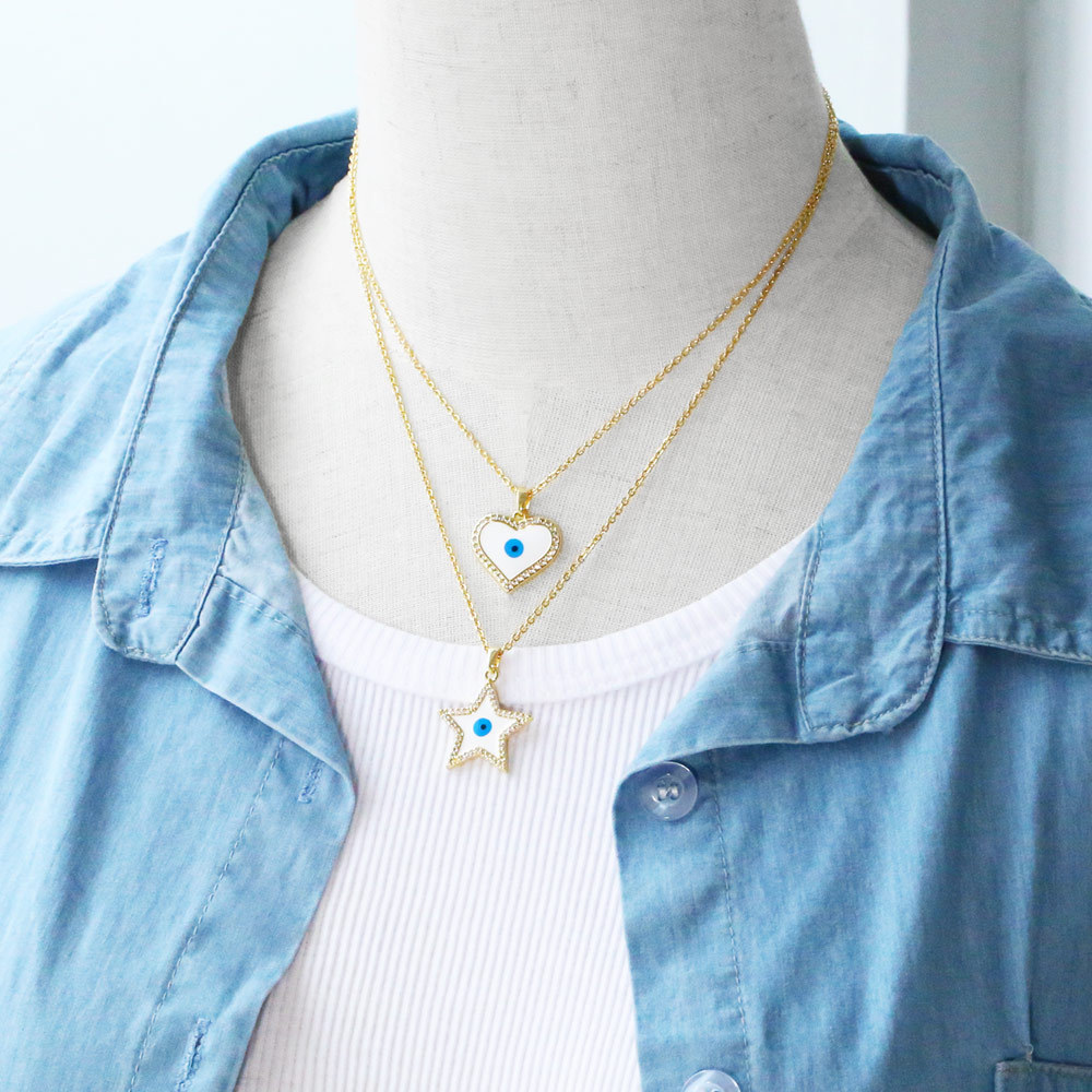 Clearance European and American jewelry geometric oil drop diamond devil eye necklace female personality sweater chain nkz75