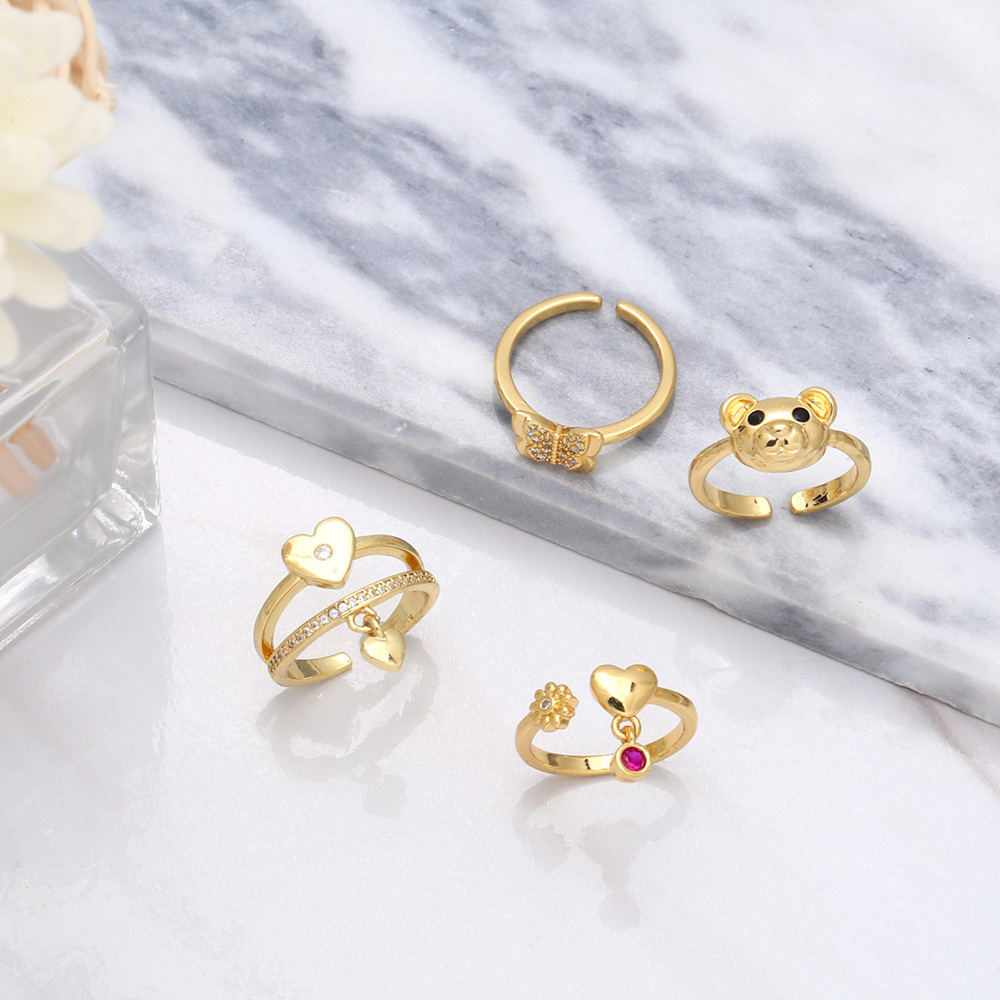 Clearance European and American jewelry INS bear love ring cute diamond butterfly girl ring rip33