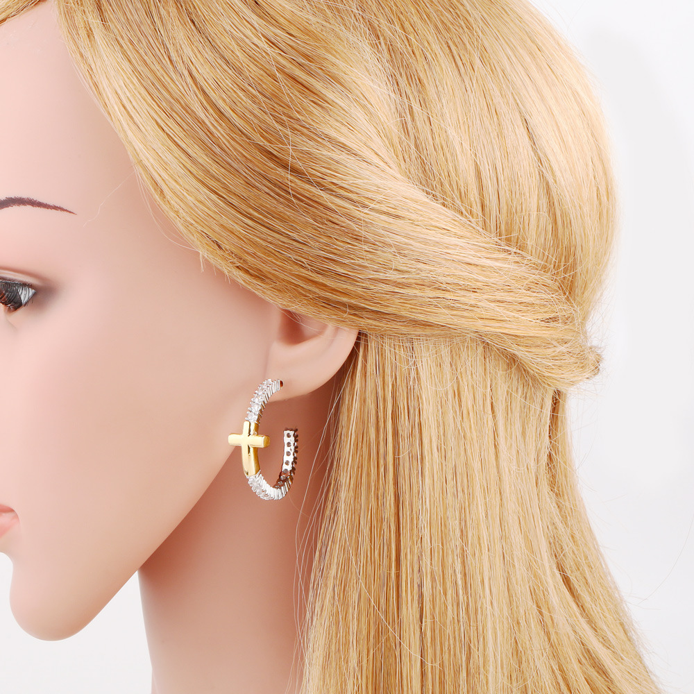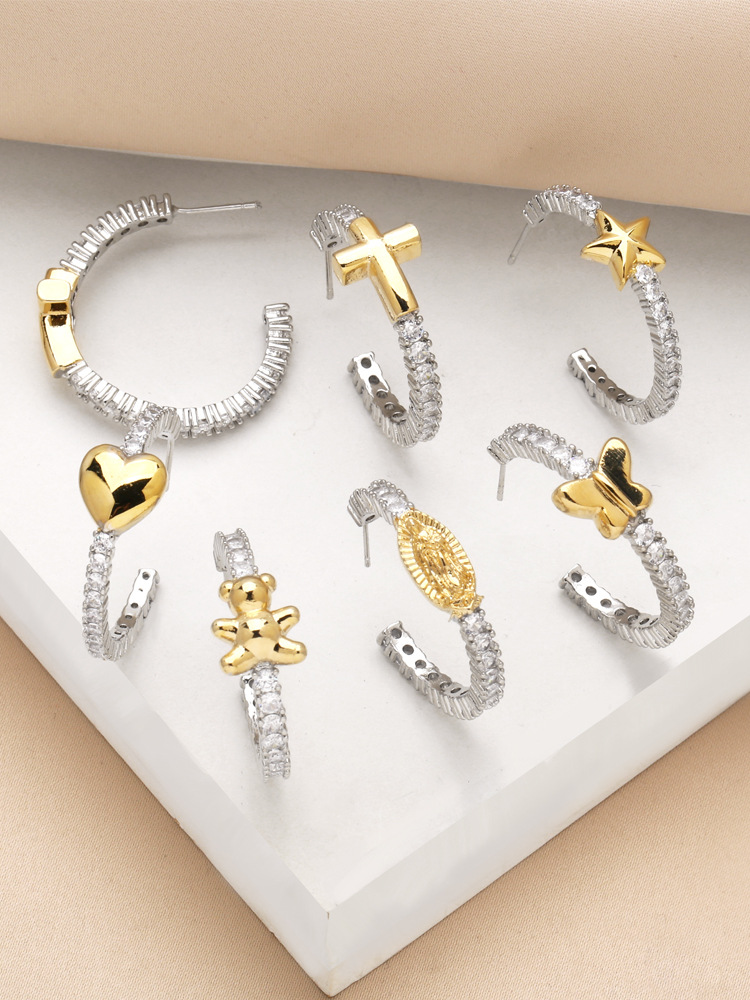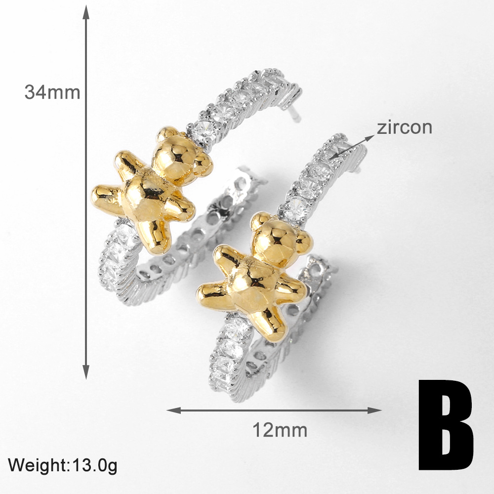 Clearance European and American jewelry love earrings gold-plated zircon five-pointed star bear cross earrings erz29