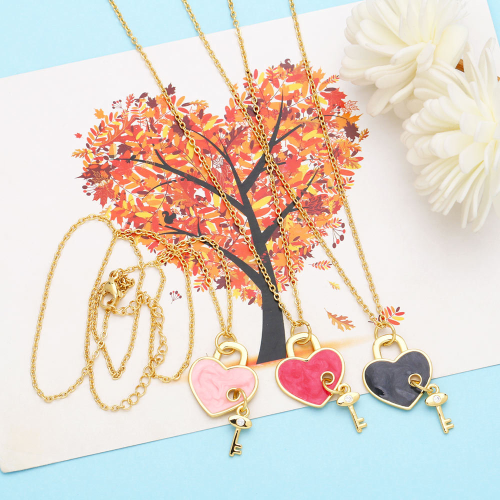 Clearance European and American jewelry love key necklace women's oil drop love lock pendant clavicle chain necklace nkn11