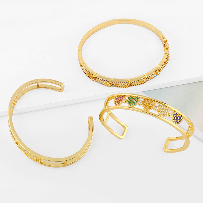Clearance European and American jewelry micro-inlaid zircon color heart bracelet letter LOVE open bracelet brc76