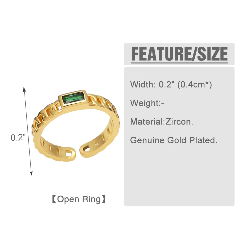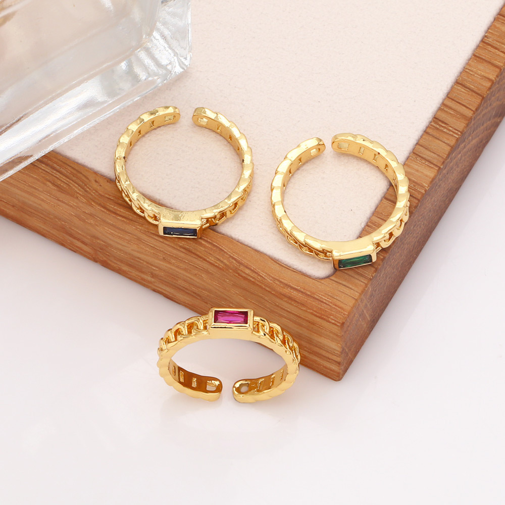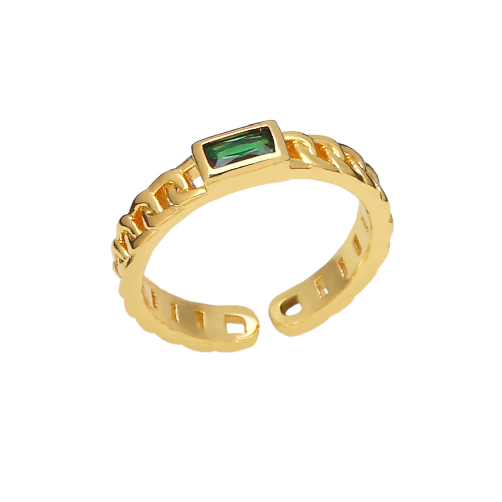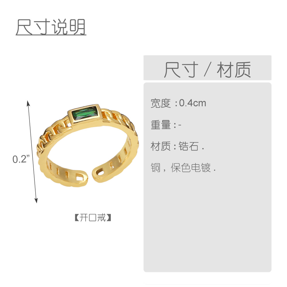 Clearance European and American jewelry personality copper zircon chain ring niche design light luxury simple ring riq45