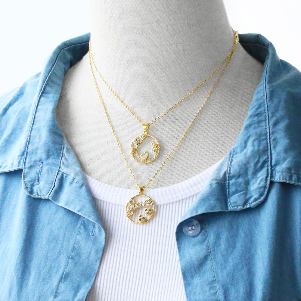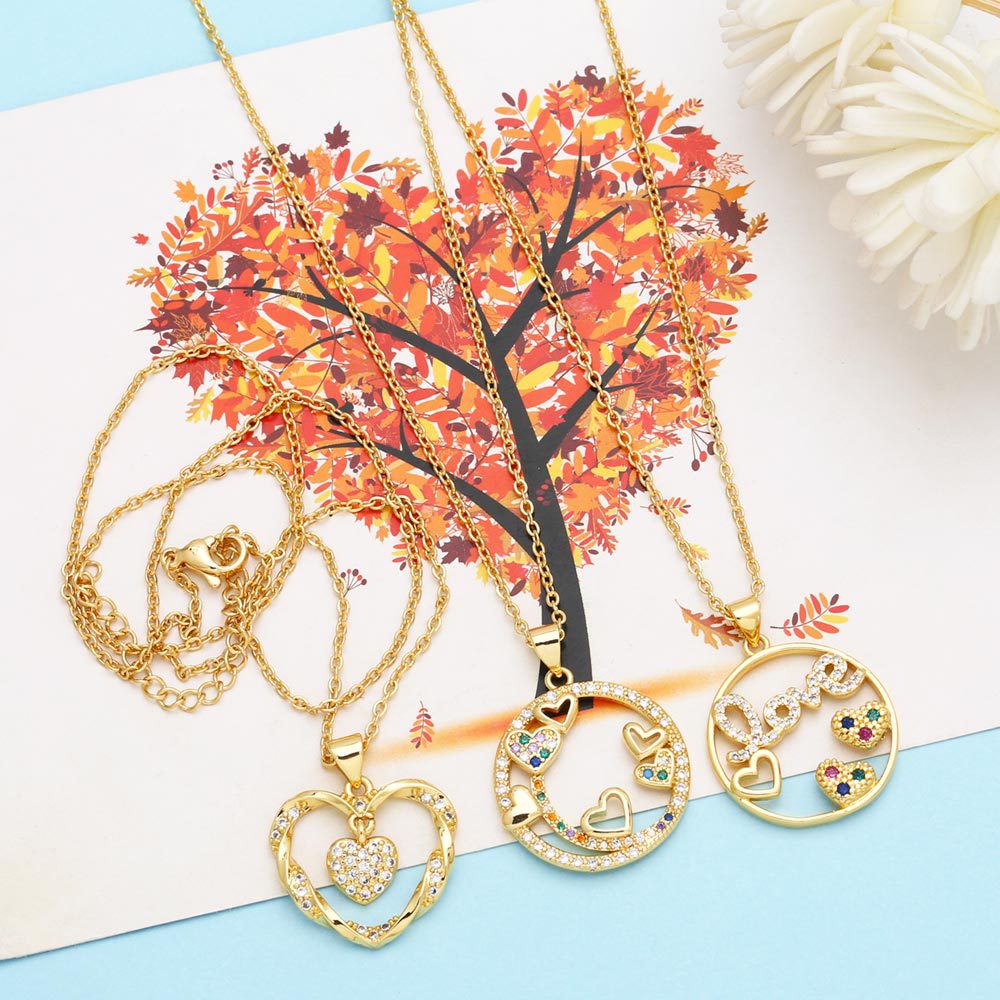 Clearance European and American jewelry personality inlaid with colored diamonds Love love necklace female niche heart-shaped clavicle nks73