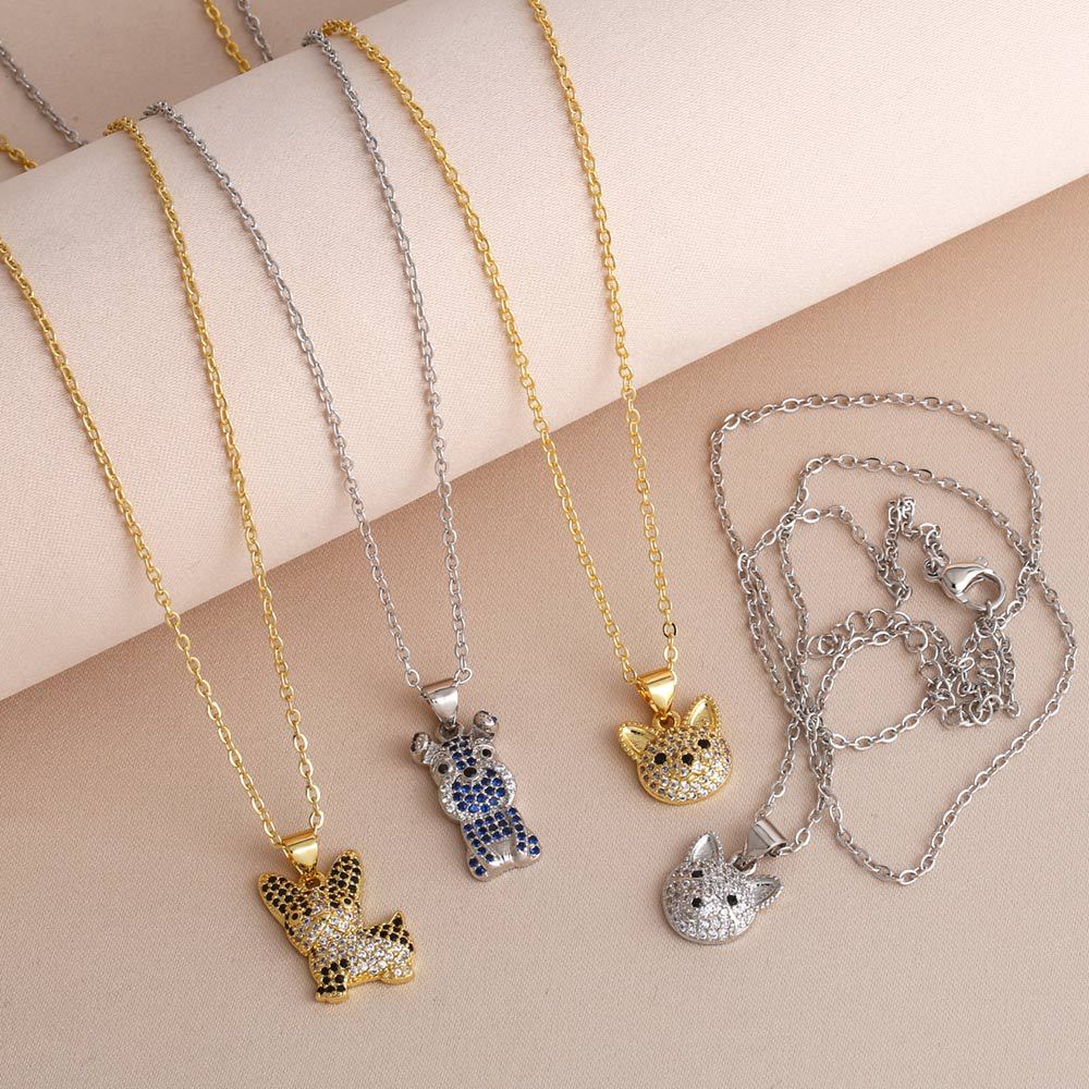 Clearance European and American jewelry puppy pendant necklace creative inlaid zircon gold-plated hip hop clavicle chain nkb867