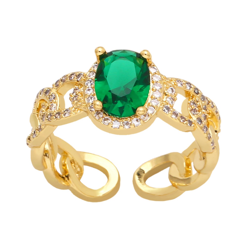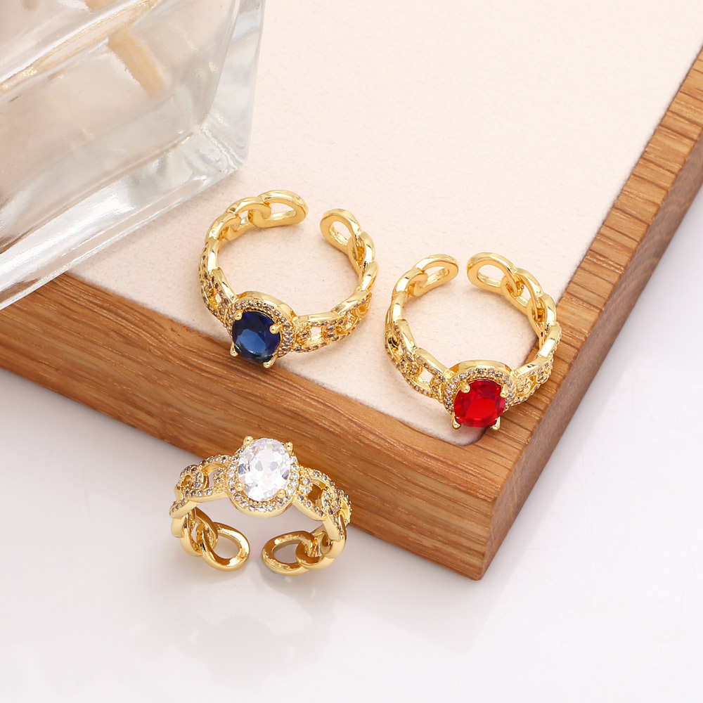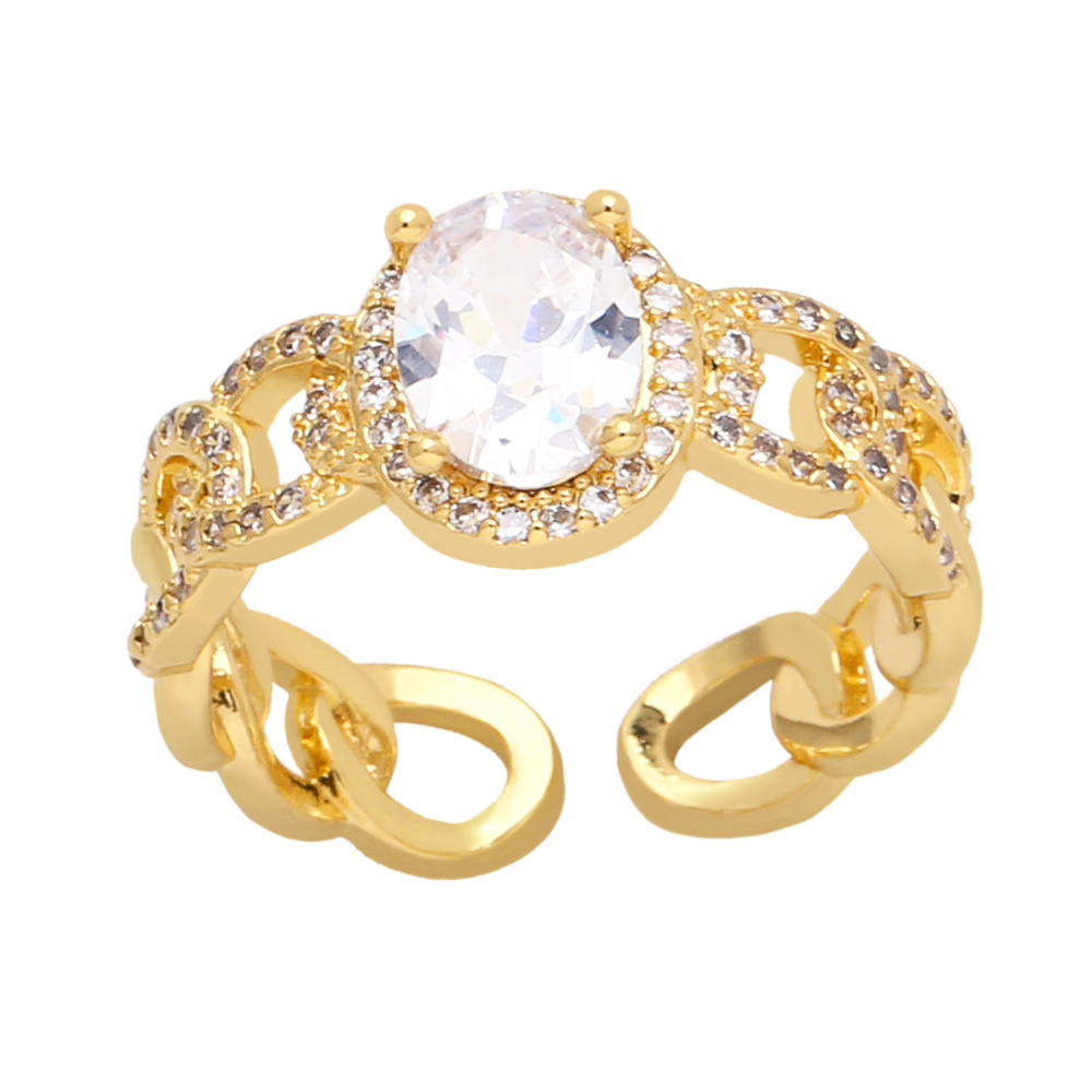 Clearance European and American jewelry simple diamond zircon ring niche chain open adjustable ring rir30