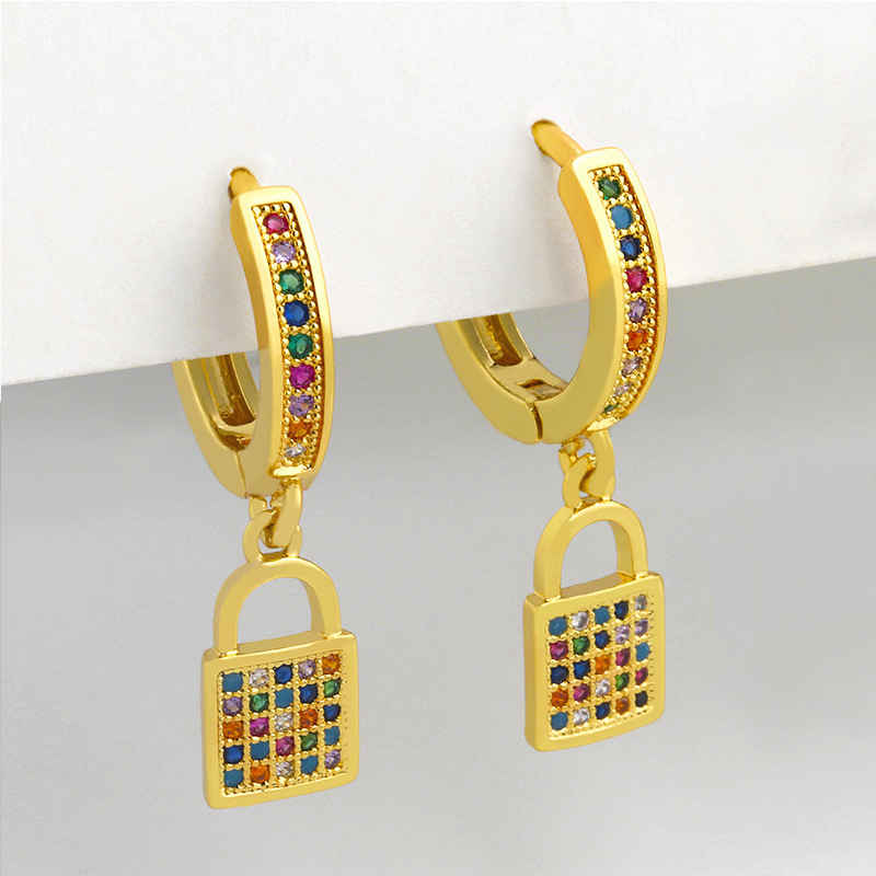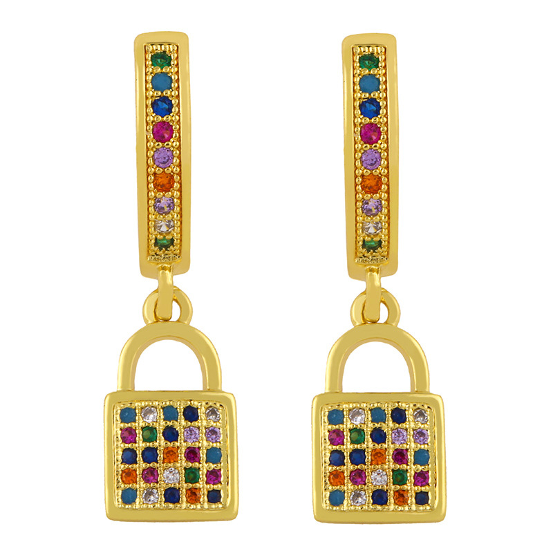 Clearance European and American jewelry temperament full diamond crescent earrings style Internet celebrity lock pendant earrings wholesale eru83