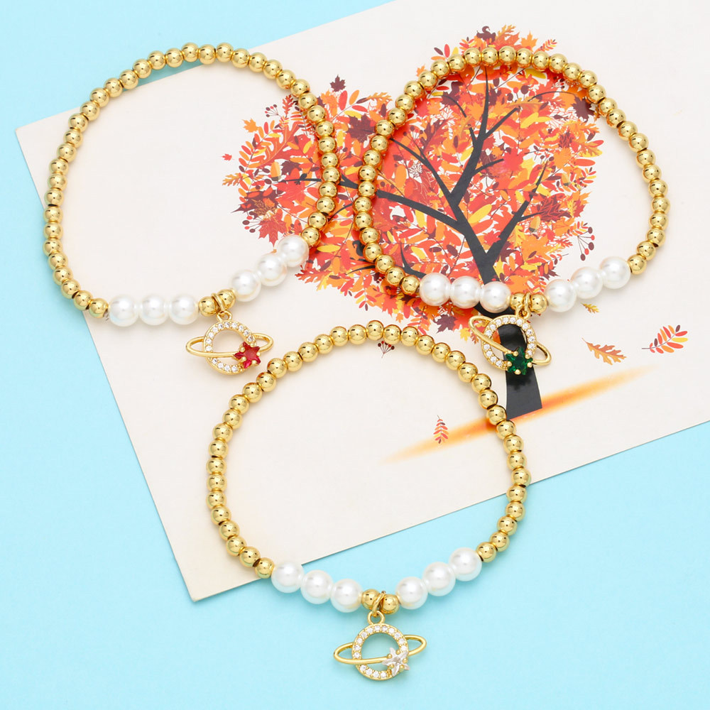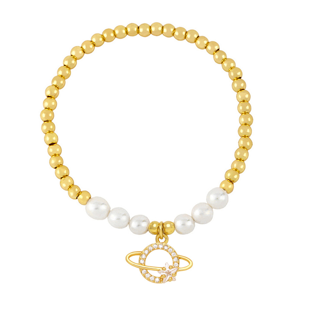 Clearance European and American jewelry wholesale fashion planet pendant bracelet pearl bracelet gold beaded bracelet brj15