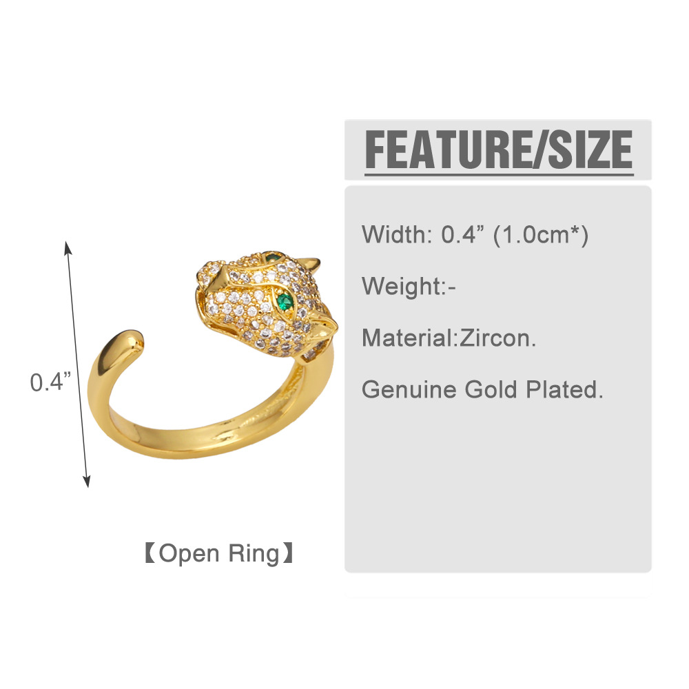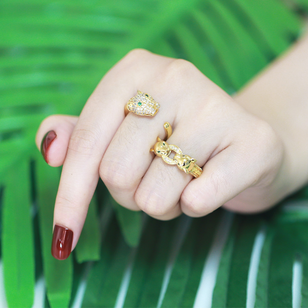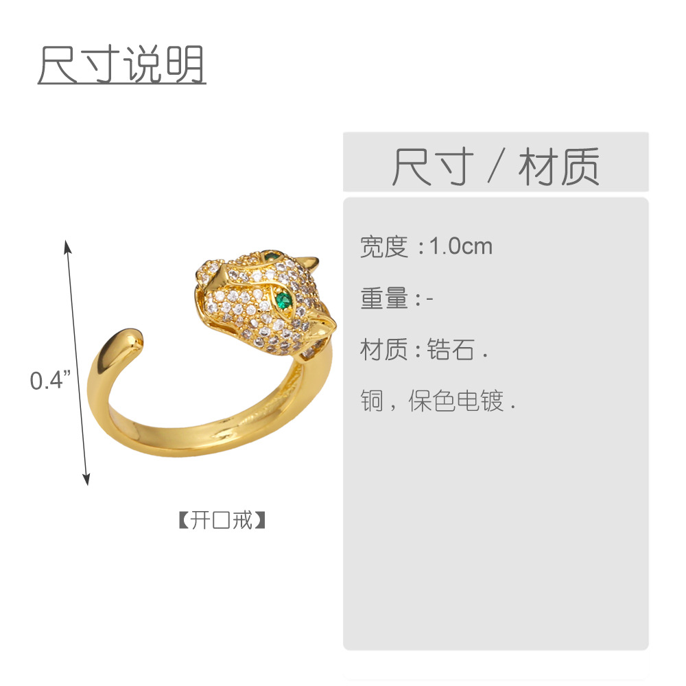 Clearance European and American leopard head ring inlaid with zircon cheetah unisex open leopard ring accessories riq01