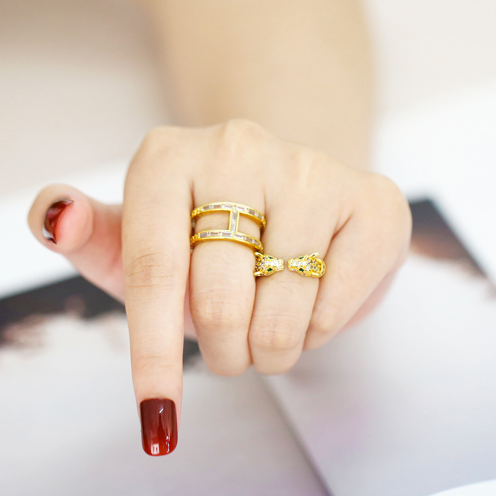Clearance European and American light luxury nail ring trend hip-hop personality leopard head open ring temperament hand jewelry rij93