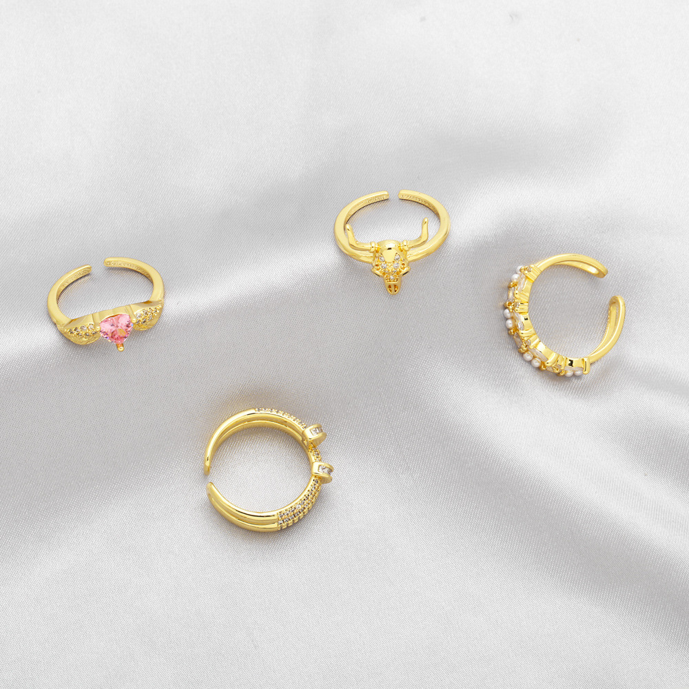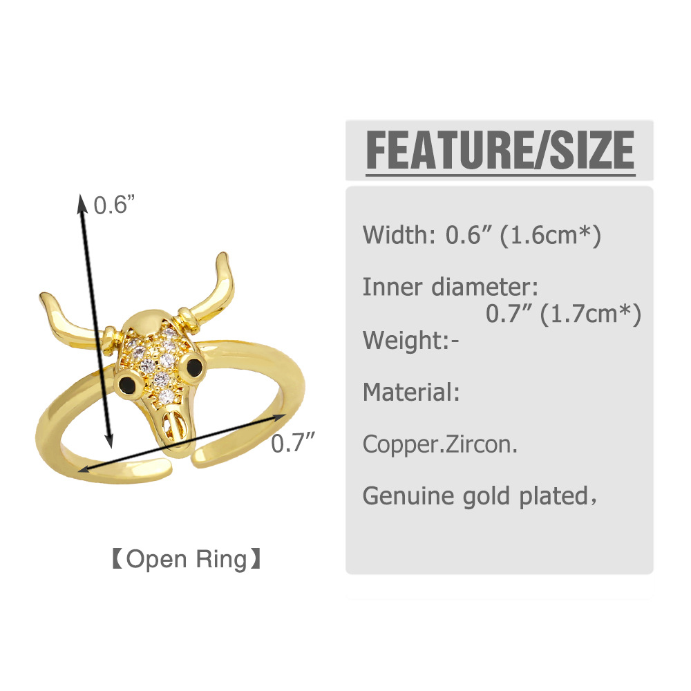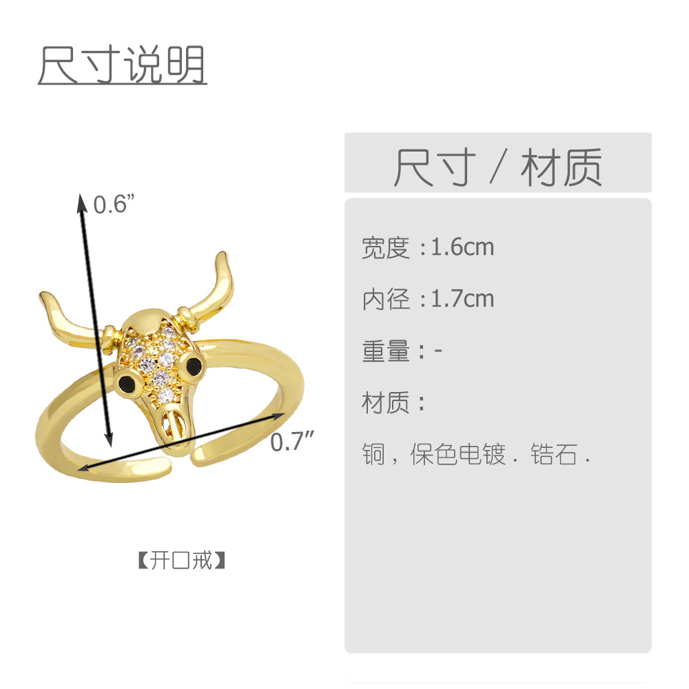 Clearance European and American light luxury niche double-layer open ring personality diamond heart wings bull head ring female rij63