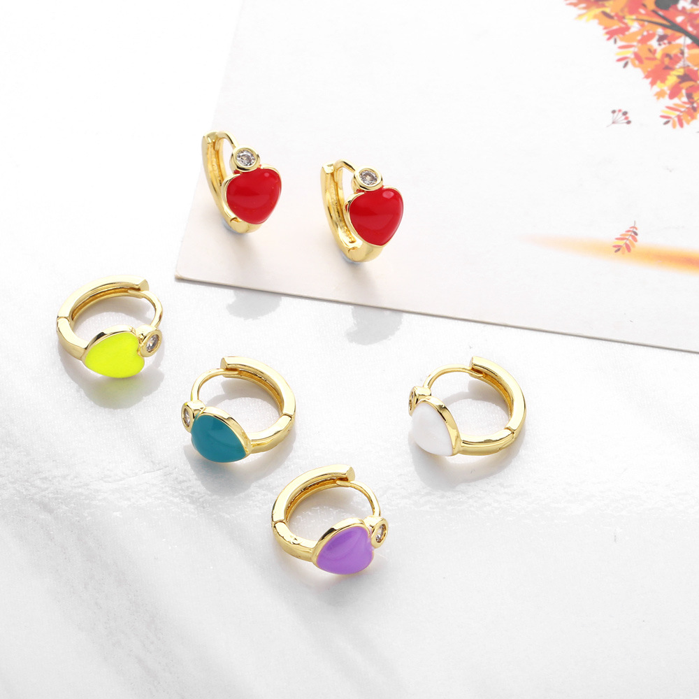 Clearance European and American love oil drop diamond earrings heart-shaped oil drop multi-color peach heart earrings female ery78