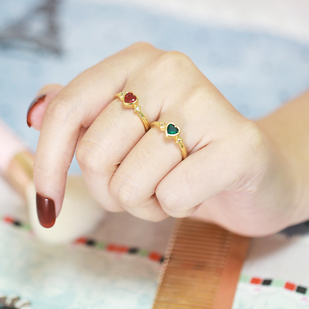 Clearance European and American love ring women's light luxury niche design diamond ring small heart-shaped zircon ring riq07