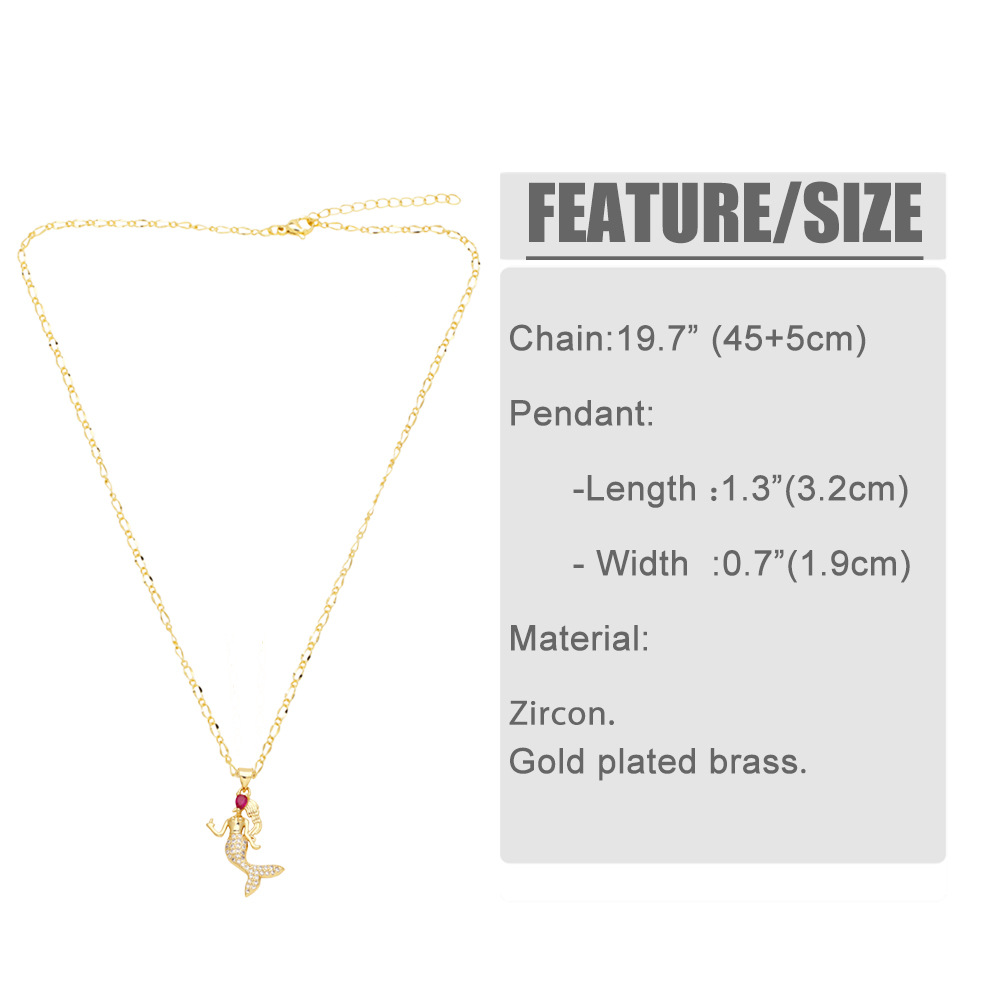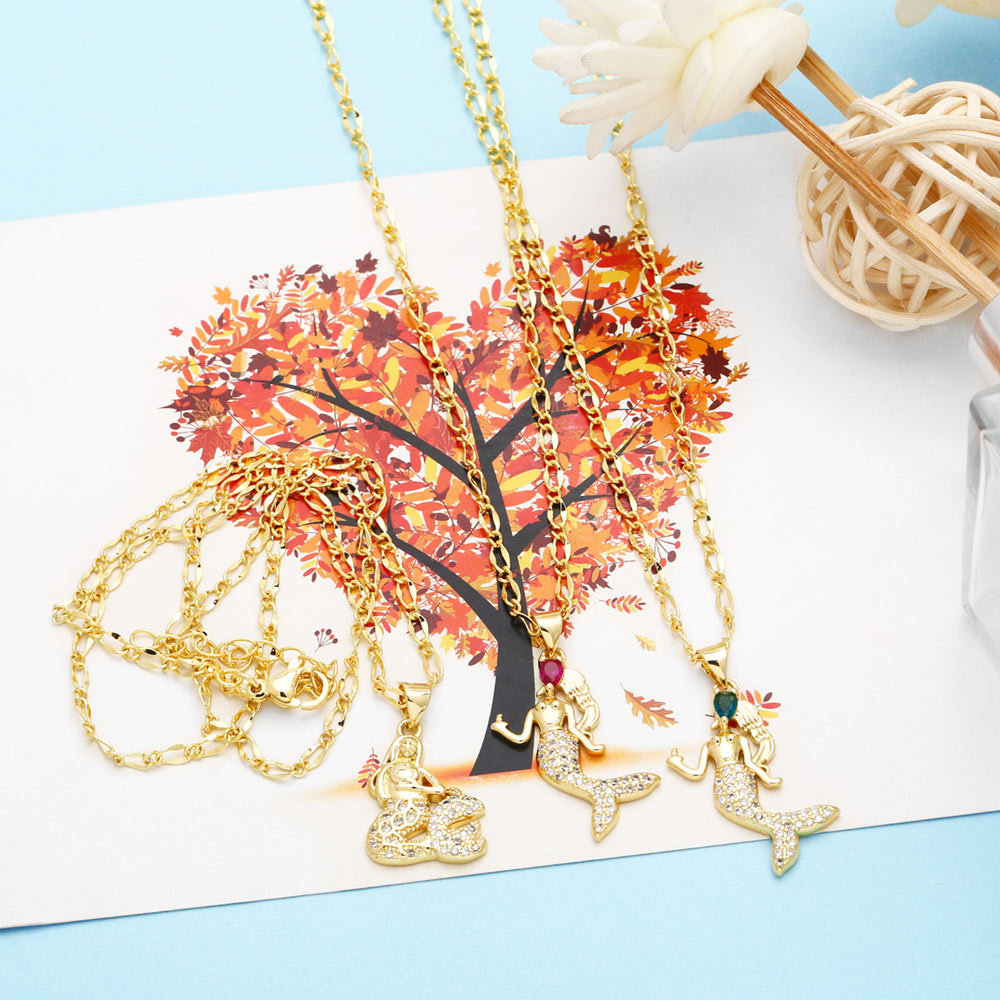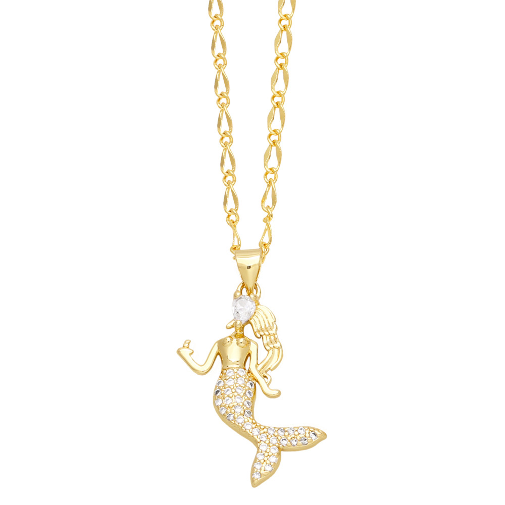 Clearance European and American Mermaid Necklace Women's Creative Niche Design Pendant Copper Plated 18K Gold Inlaid Zircon Jewelry nkw65