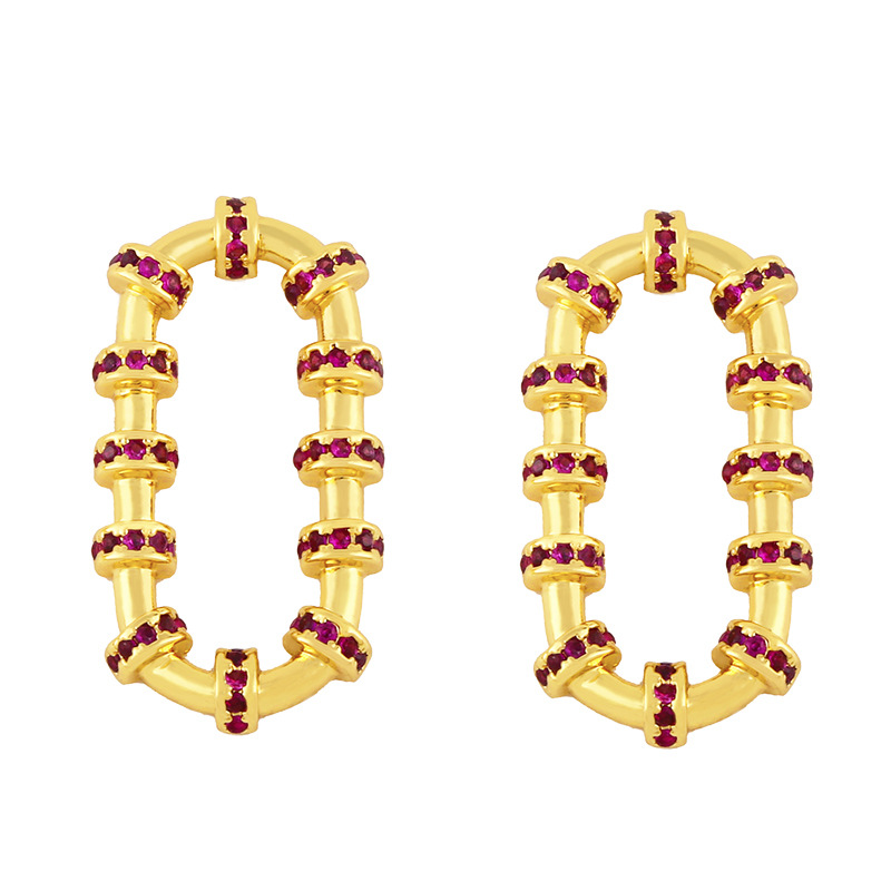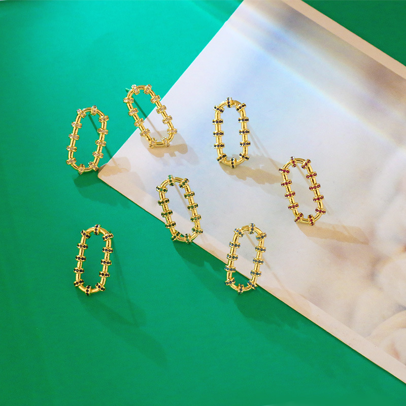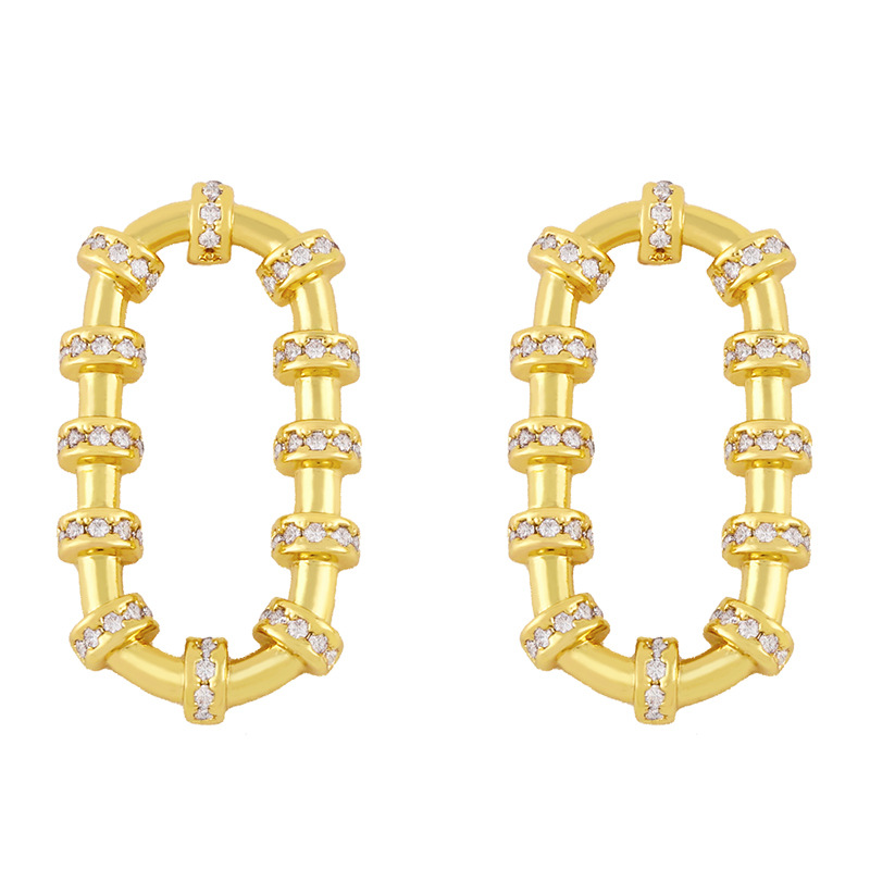 Clearance European and American metal zircon geometric earrings female oval circle cold style niche design earrings erx59