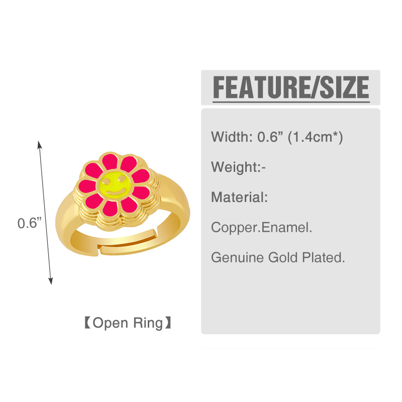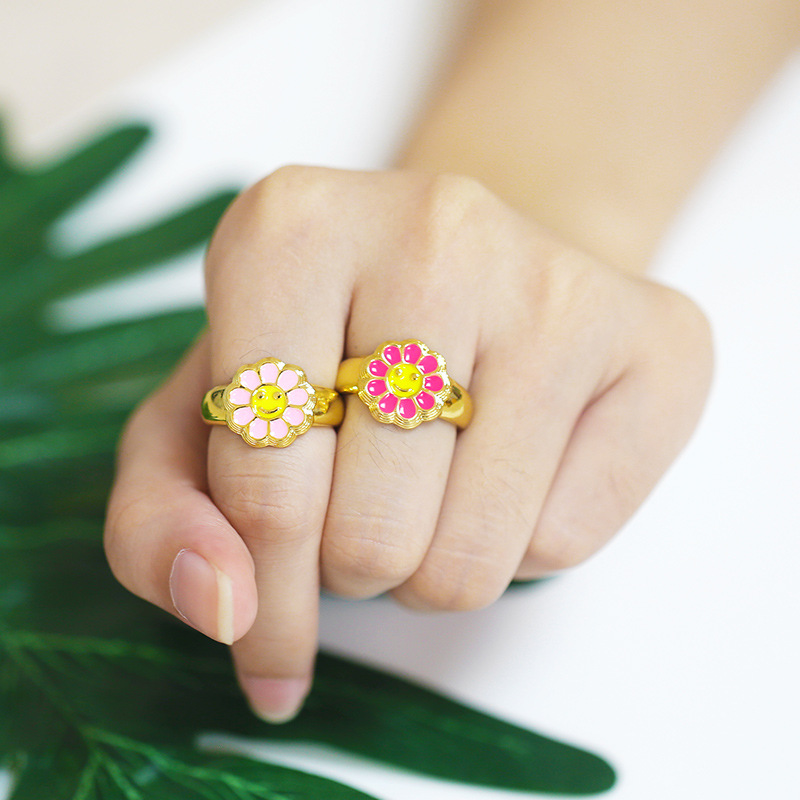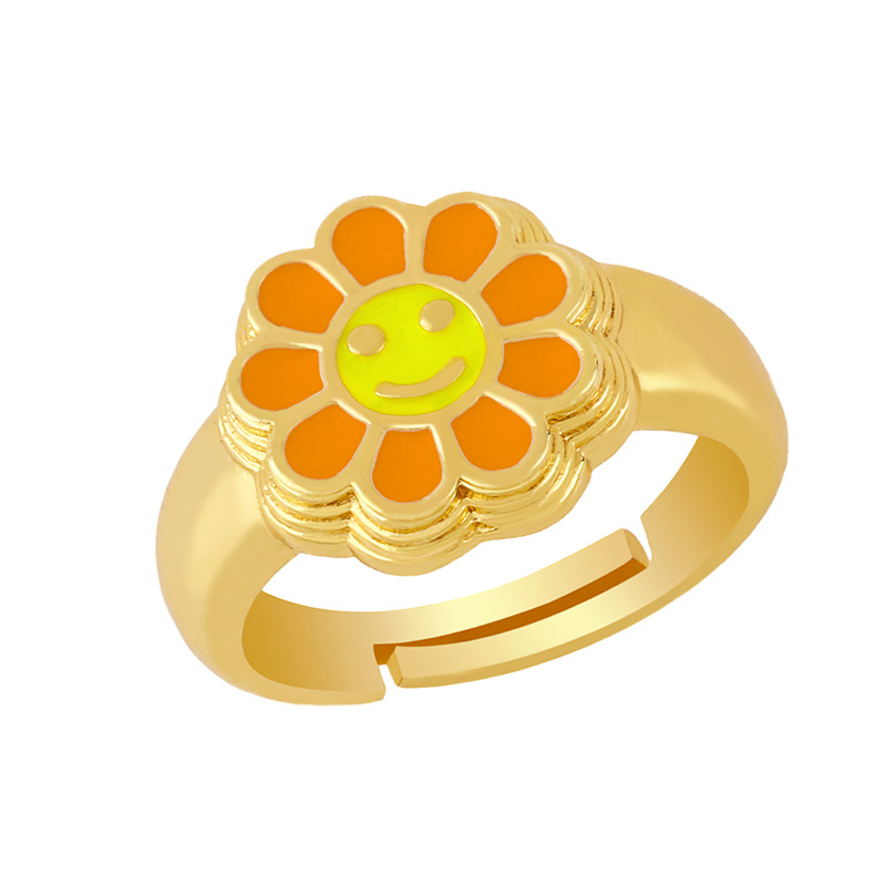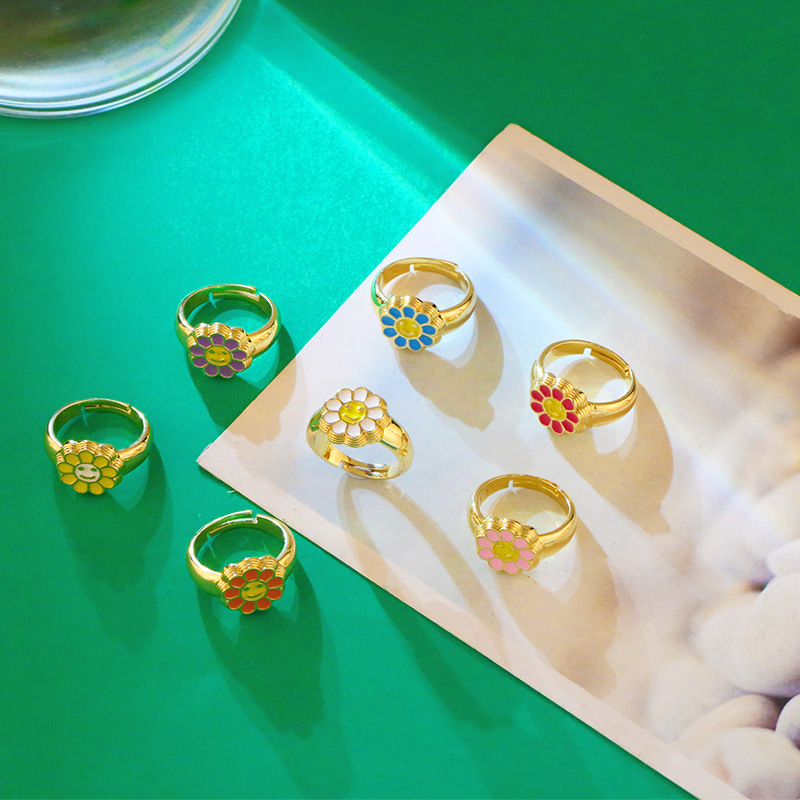 Clearance European and American new accessories Ins Internet celebrity sunflower oil drop open ring female smiley face ring rim52