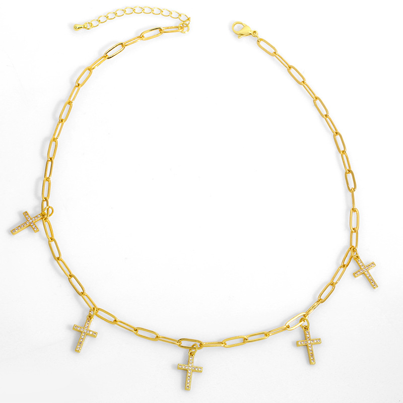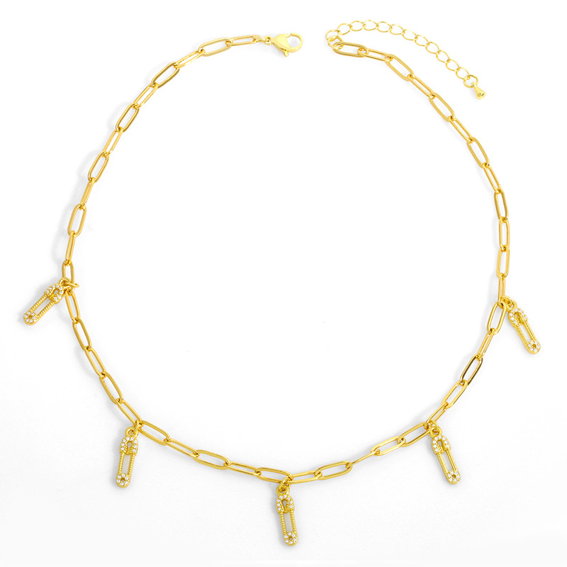 Clearance European and American new accessories pin paper clip necklace women's diamond cross clavicle chain nkt73
