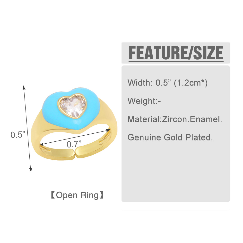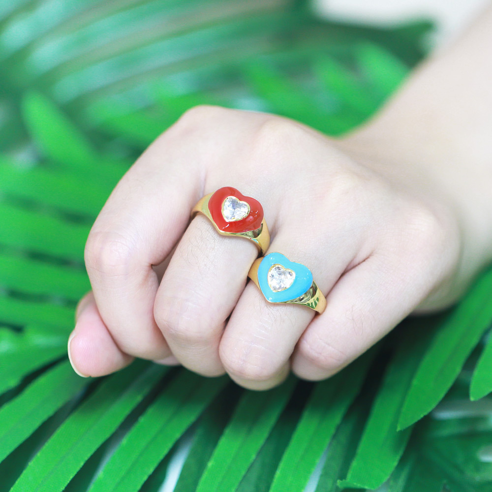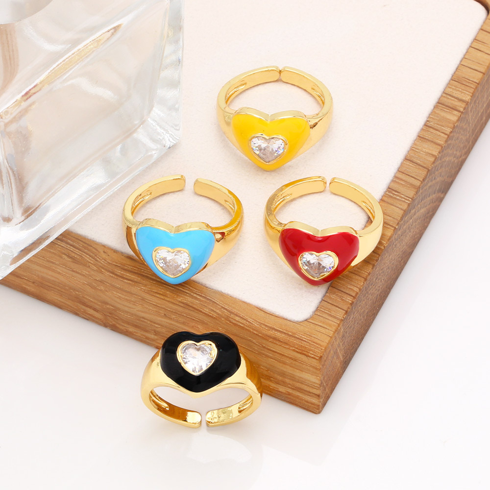 Clearance European and American new high-end niche design color oil drop love peach heart ring couple ring rip73