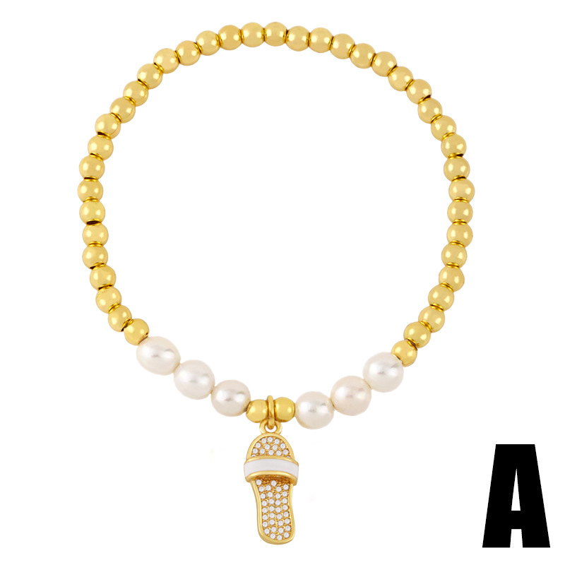 26 English letters bracelet female European and American copper beads pearl elastic bracelet fashion crown letter bracelet brf80