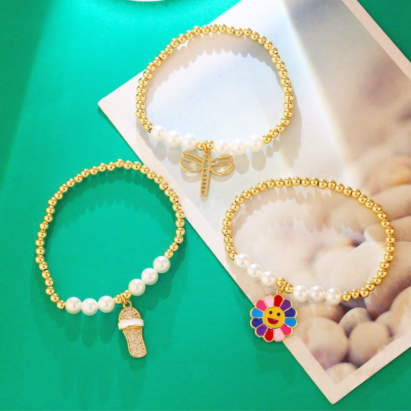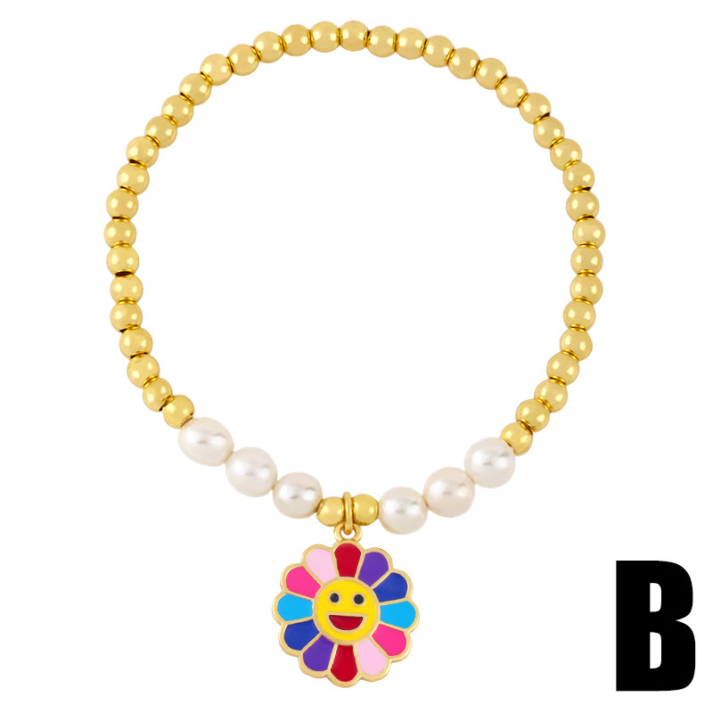 Clearance European and American new jewelry color sunflower sunflower smiley face pearl bracelet beaded bracelet female brd82