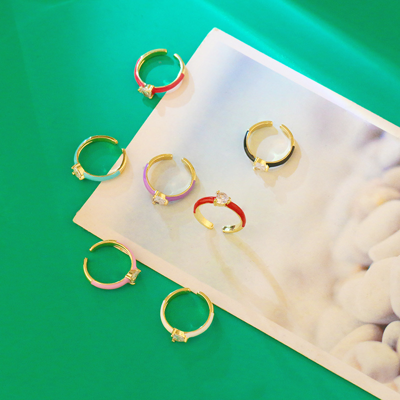 Clearance European and American new love heart zircon ring net celebrity niche design sense drop oil ring female rin18