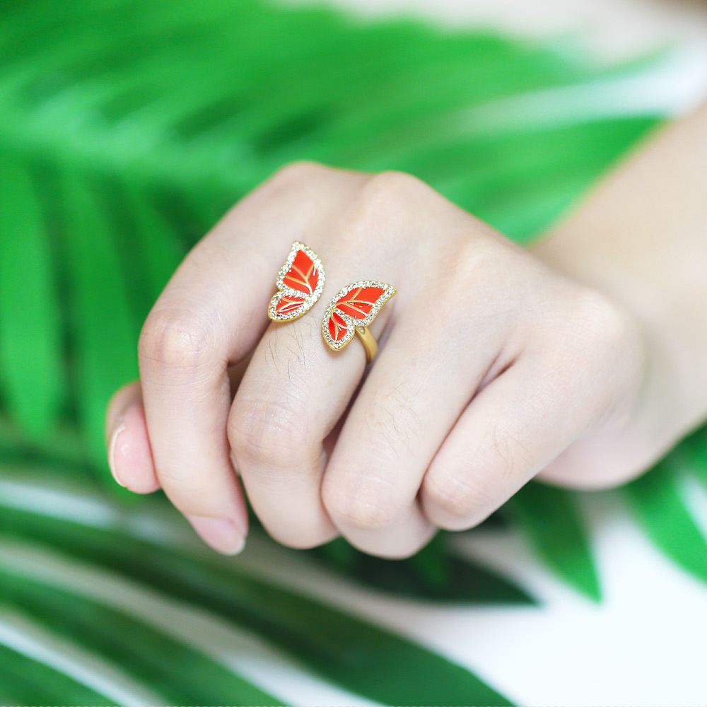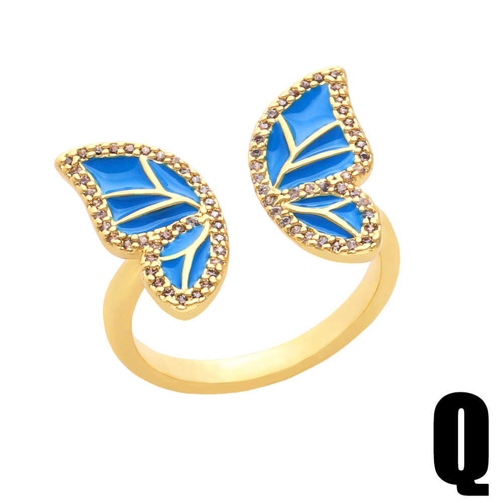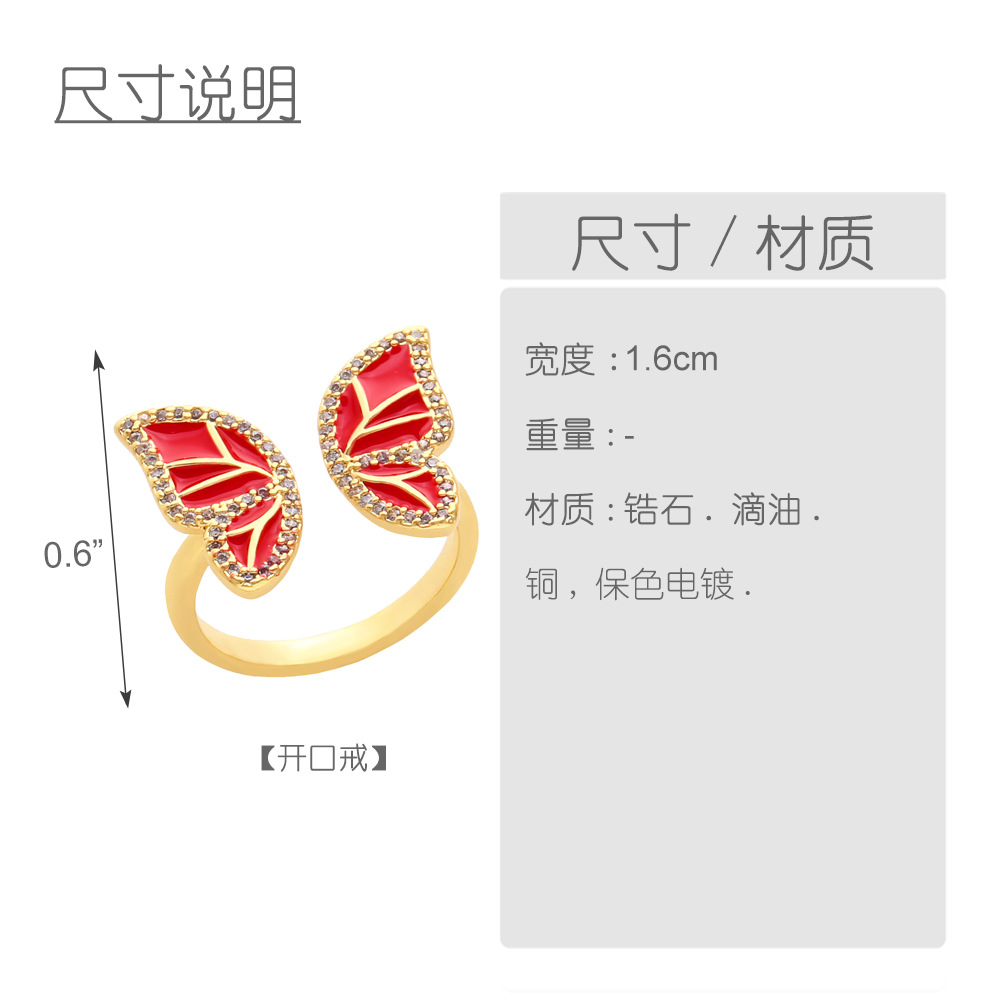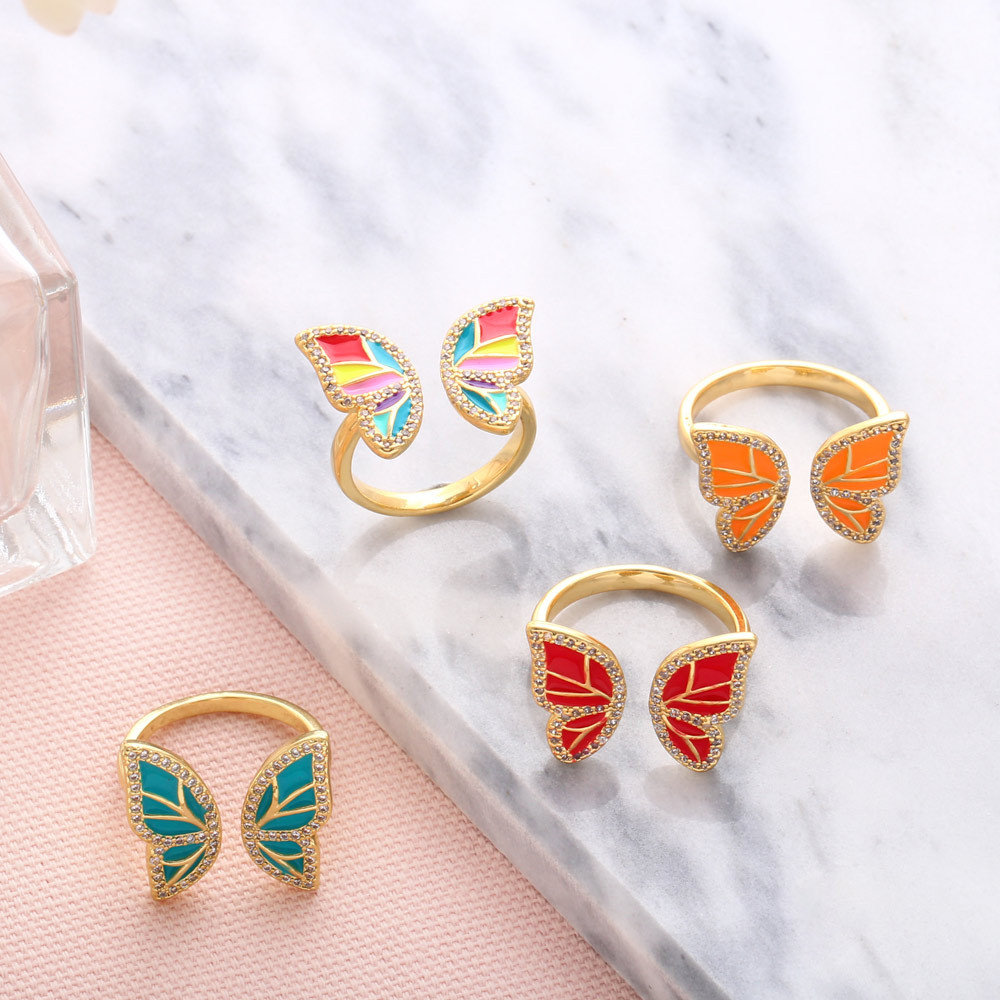 Clearance European and American new multi-color oil-drop zircon butterfly ring female creative niche butterfly hand jewelry rin78