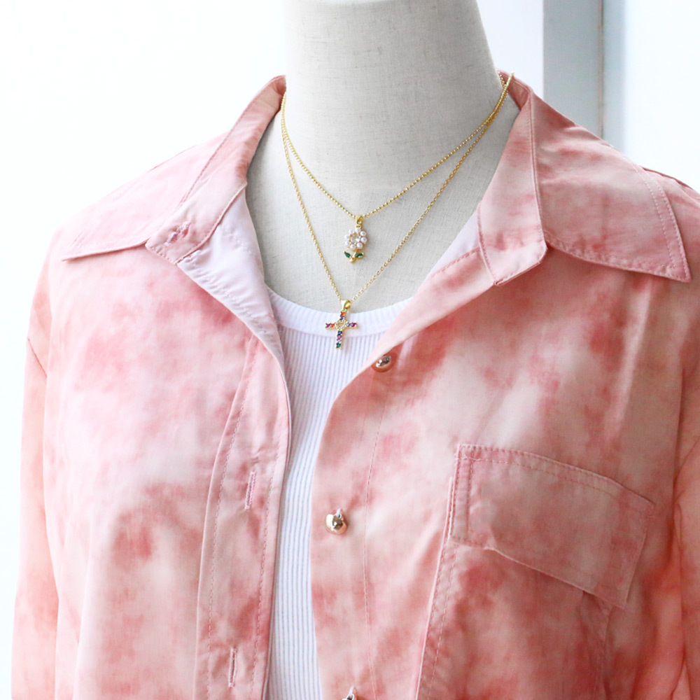Clearance European and American new temperament simple pearl flower necklace style sweet necklace versatile sweater chain nkq30