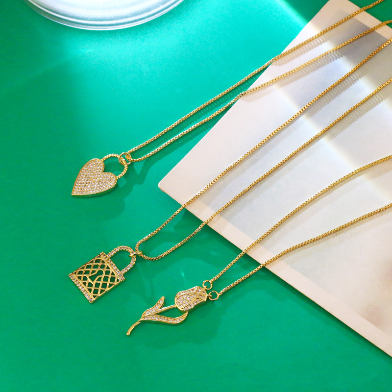 Clearance European and American new women's love lock necklace light luxury rose pendant necklace nkw12