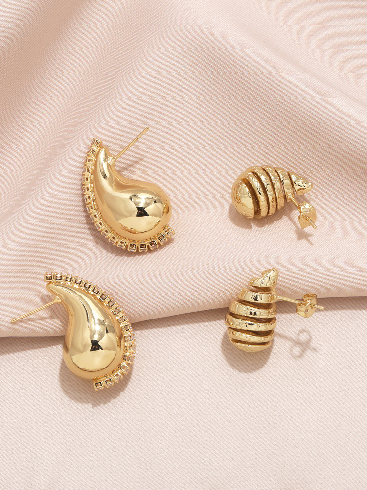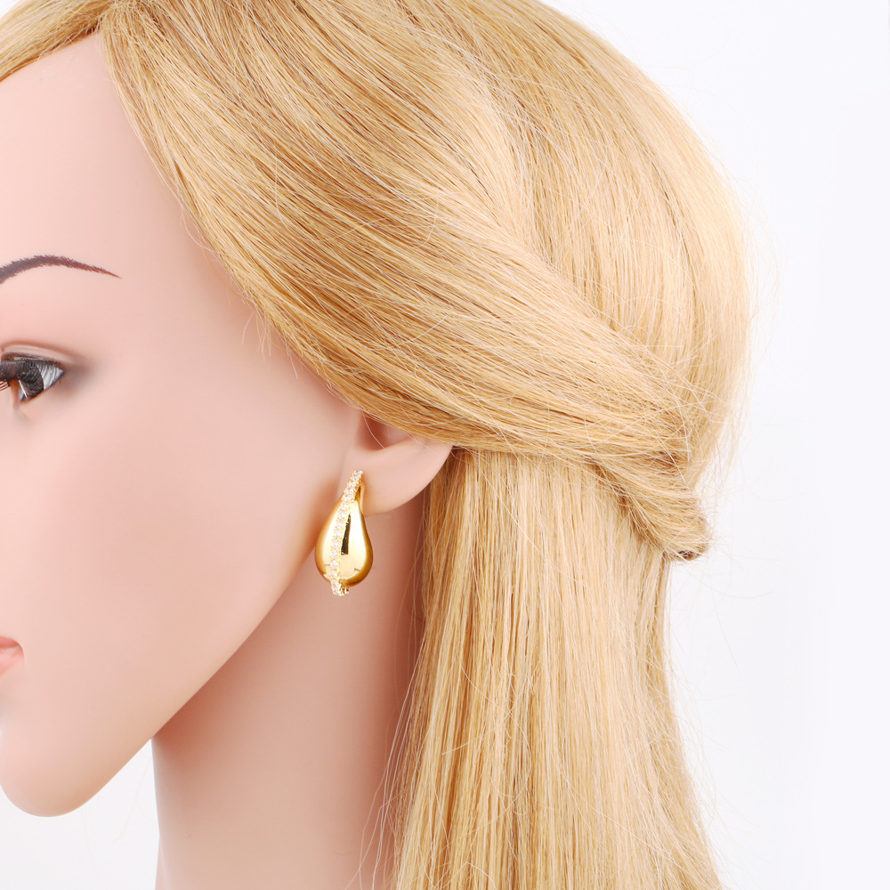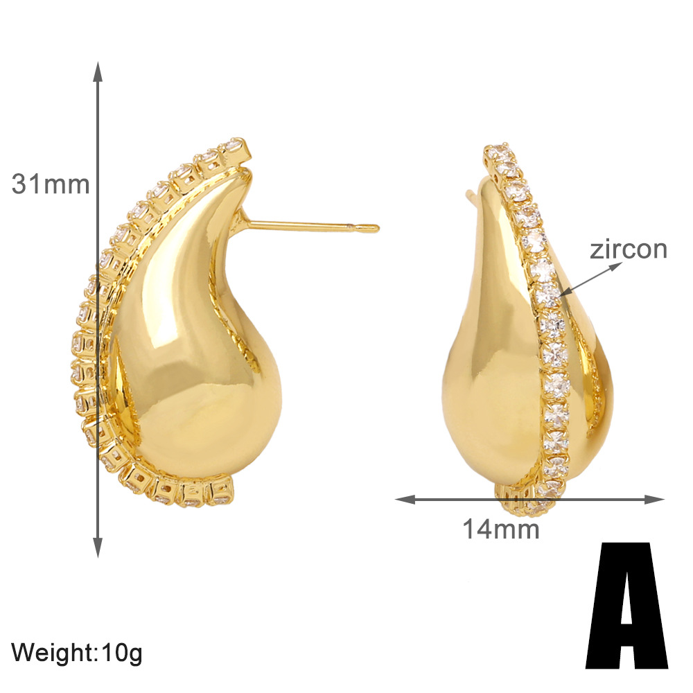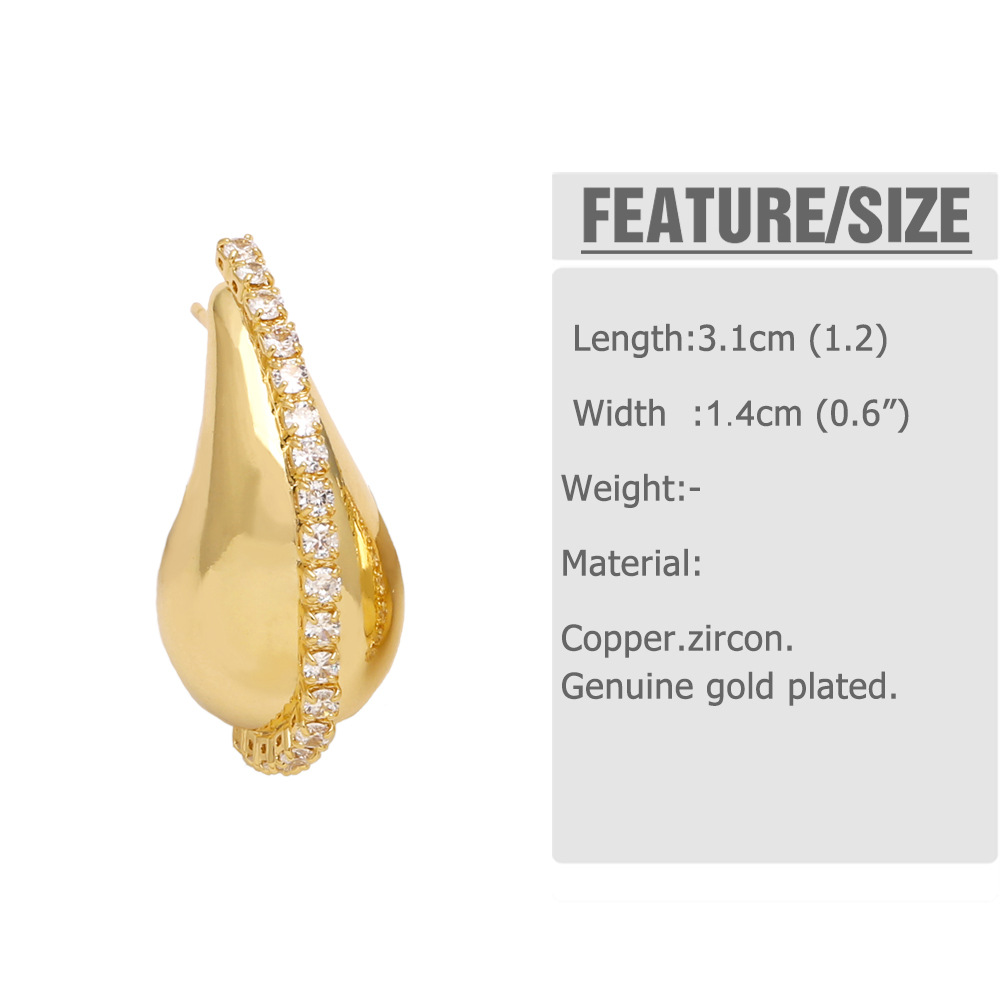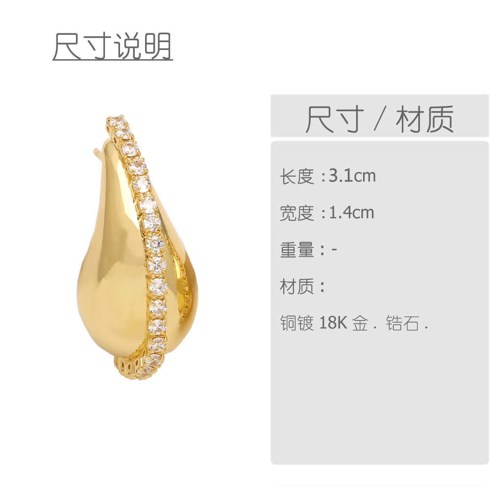 Clearance European and American niche design water drop earrings female personality creative copper plated 18K gold inlaid zircon earrings ers97