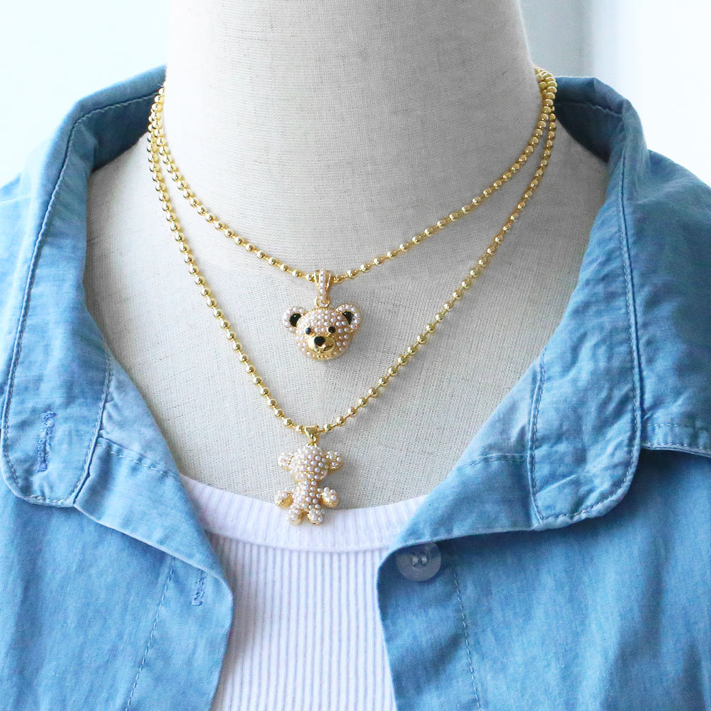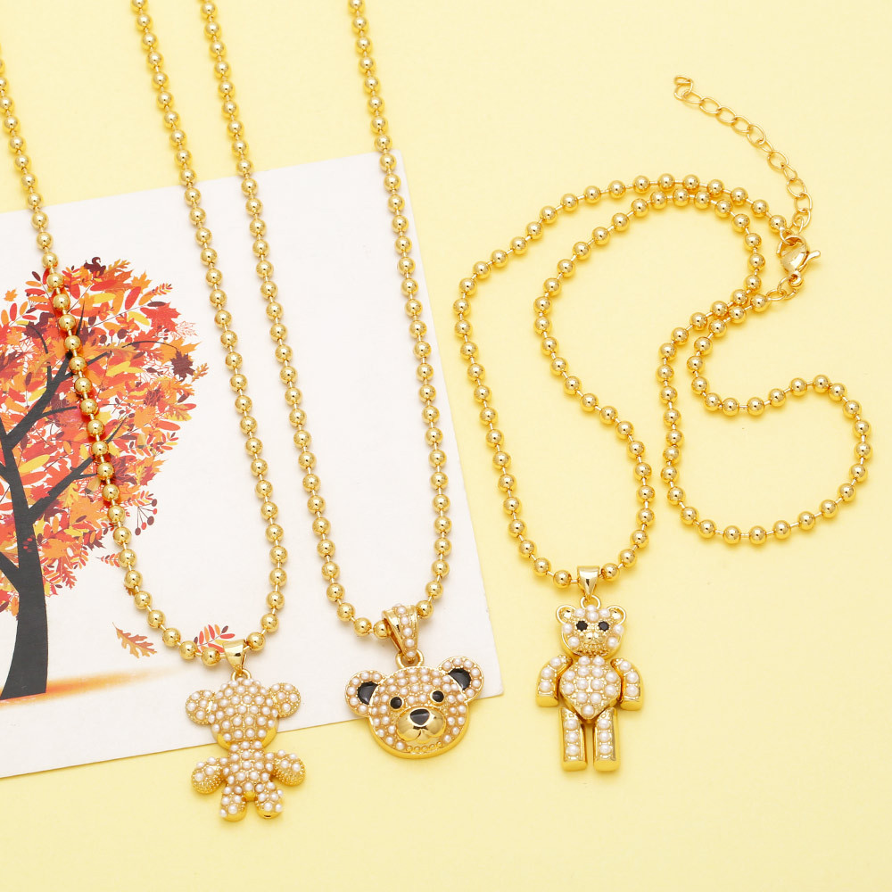Clearance European and American niche micro-inlaid imitation pearl bear necklace female Internet celebrity personality hip-hop versatile sweater chain nkb792