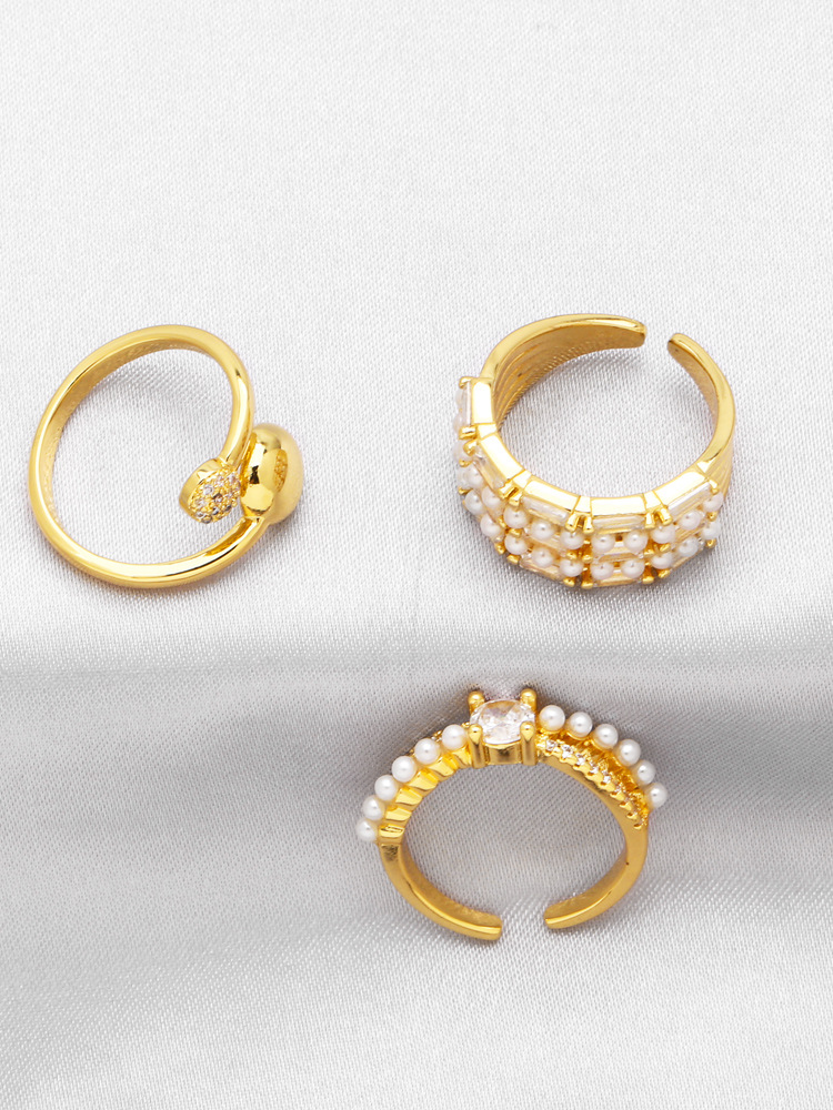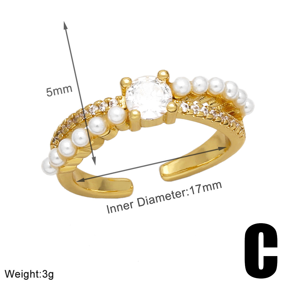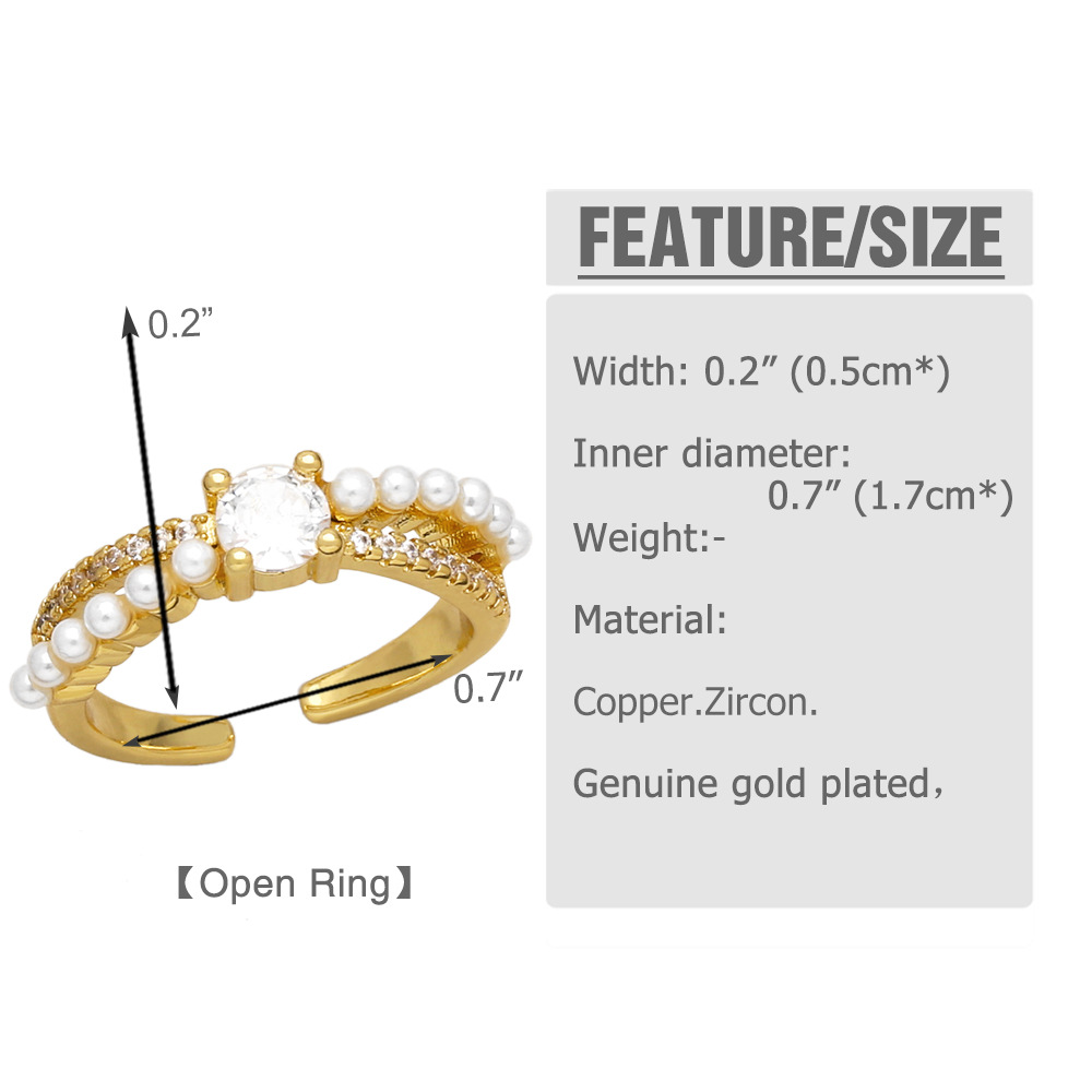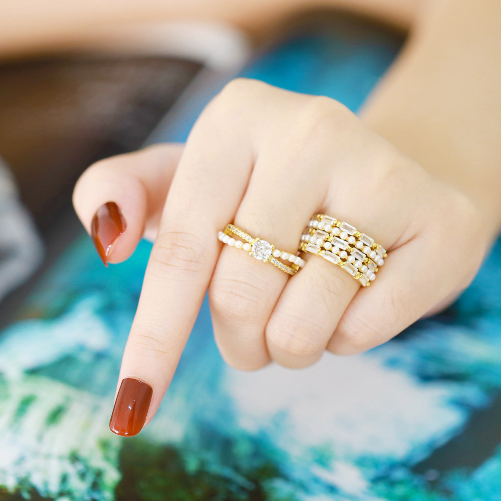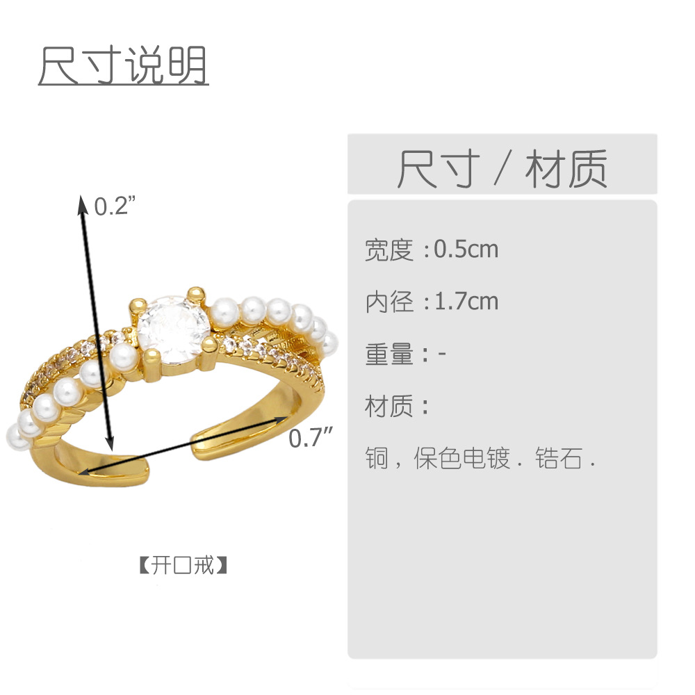 Clearance European and American pearl ring female simple niche design geometric open zircon light luxury ring rim25