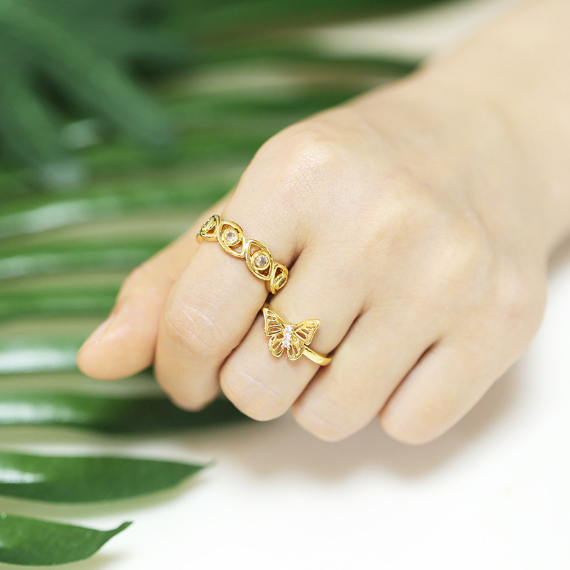 Clearance European and American personality fashion diamond eye butterfly ring female temperament student all-match ring rik80