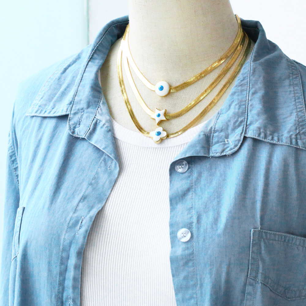 Clearance European and American personality hip-hop flat snake bone chain blade chain devil eye pendant necklace female nkp43