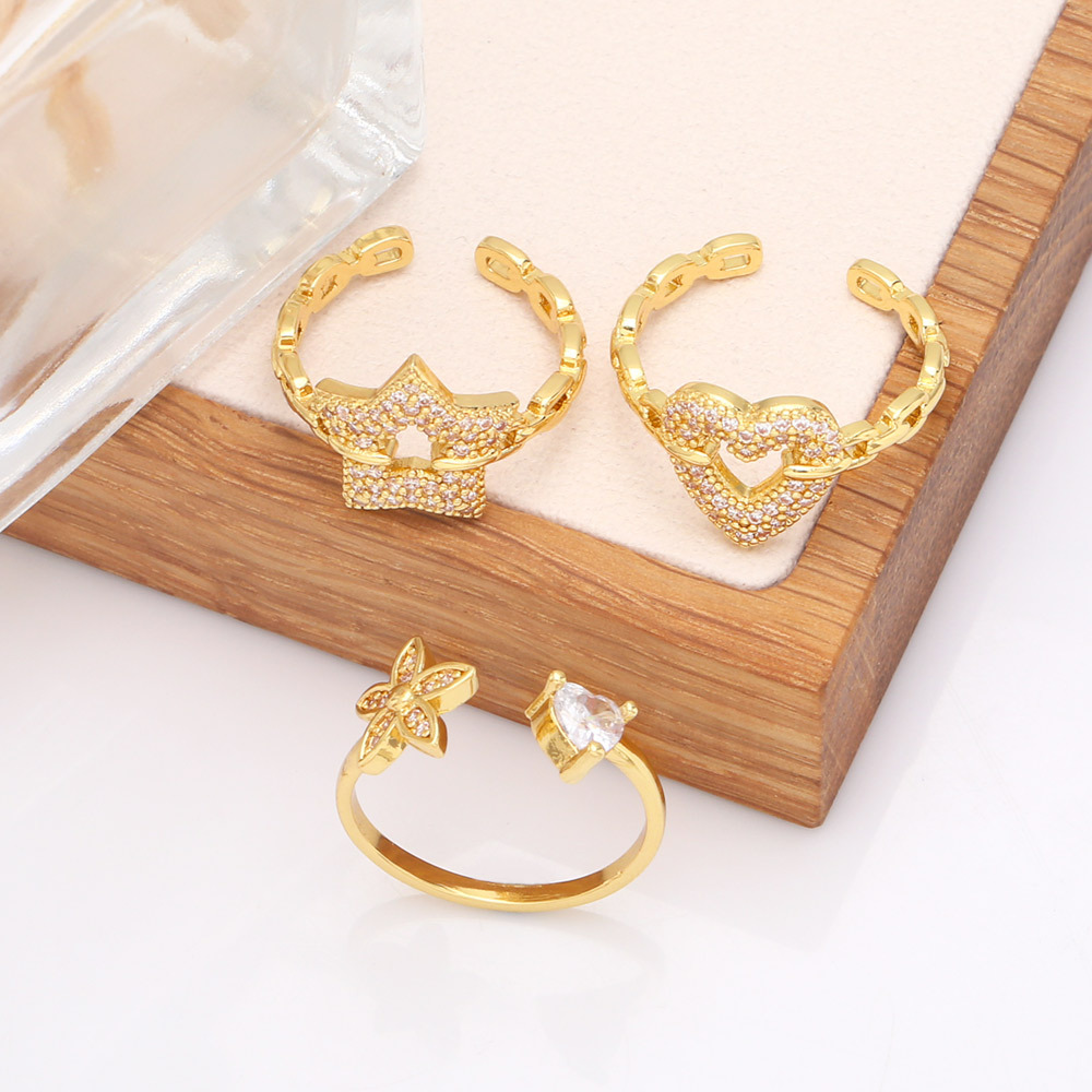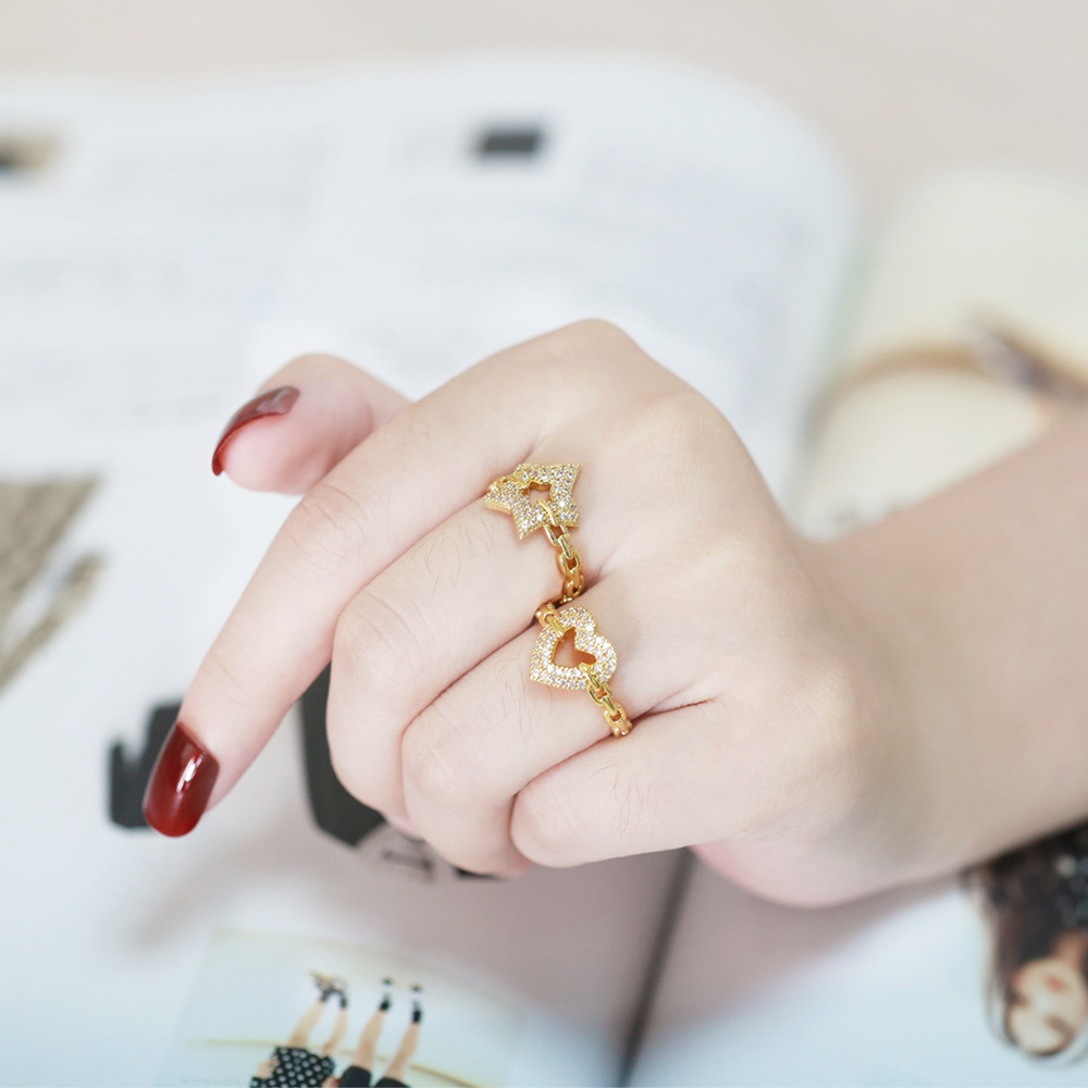 Clearance European and American personality hollow chain love five-pointed star ring female cold style retro ring rir26