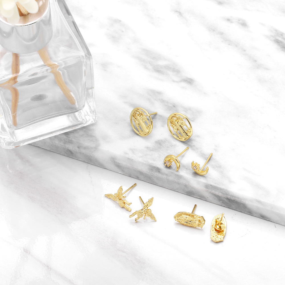 Clearance European and American personality inlaid zircon Madonna Angel piercing earrings fashion star moon earrings earrings ery93