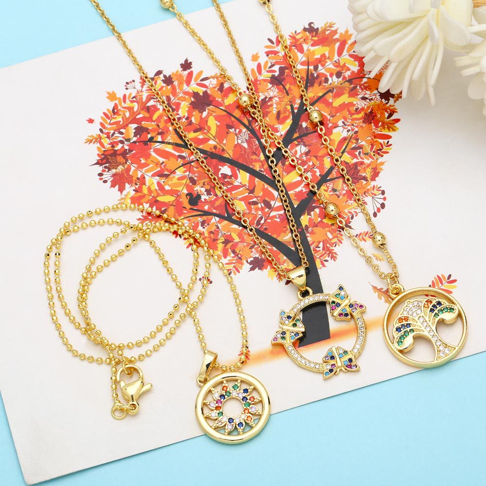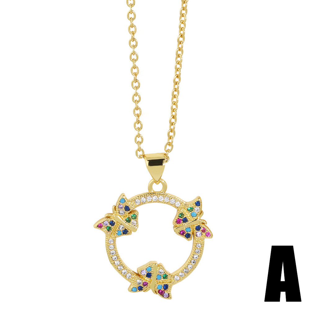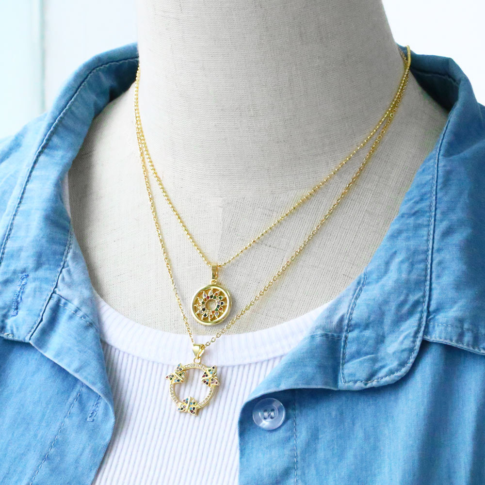 Clearance European and American personality micro-inlaid colored zircon jewelry trend retro butterfly sun pendant necklace female nkp32
