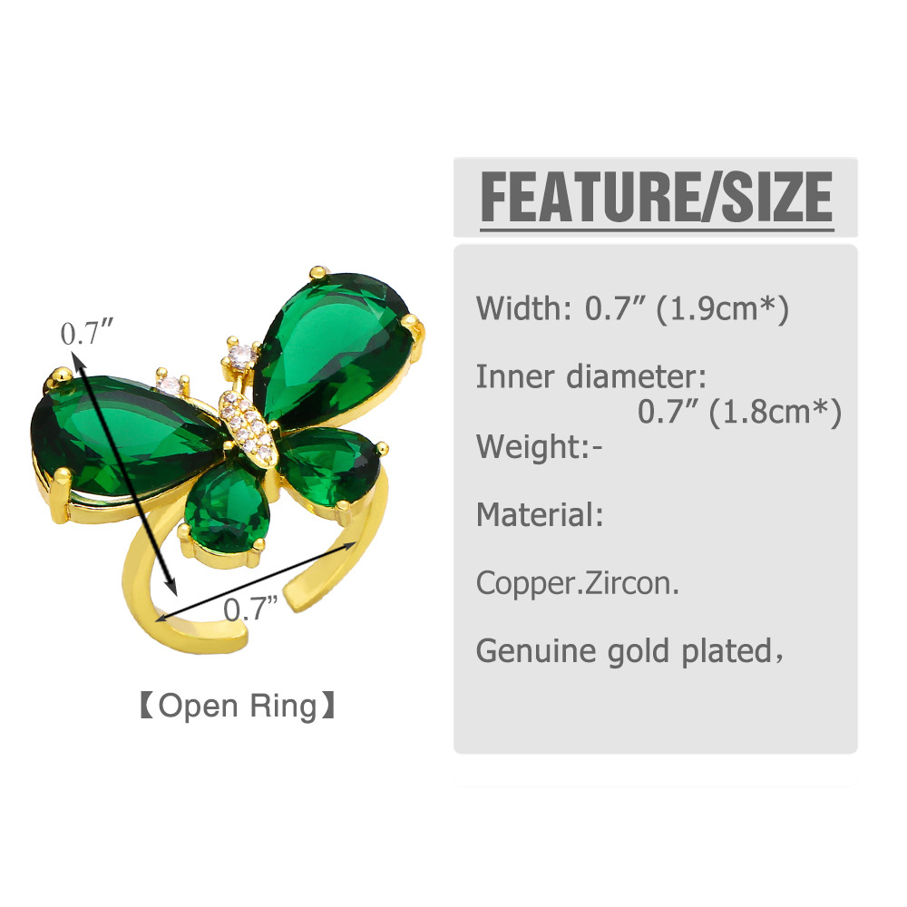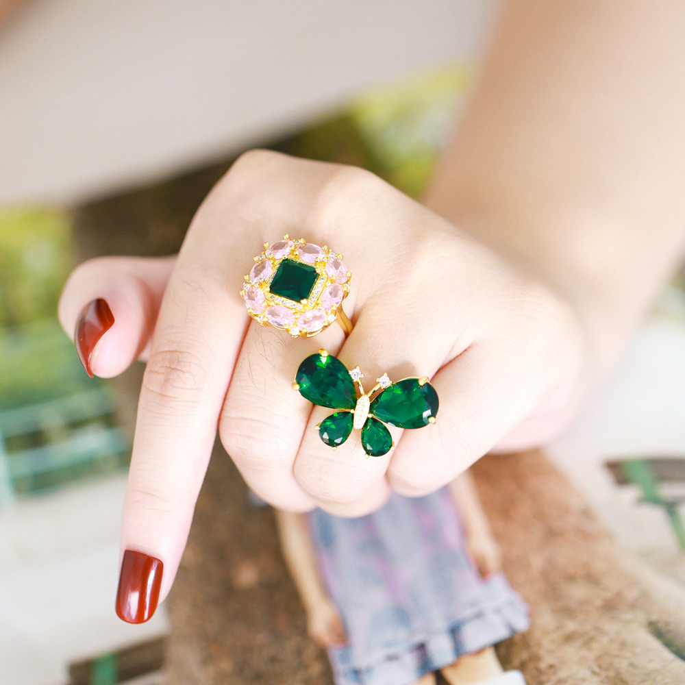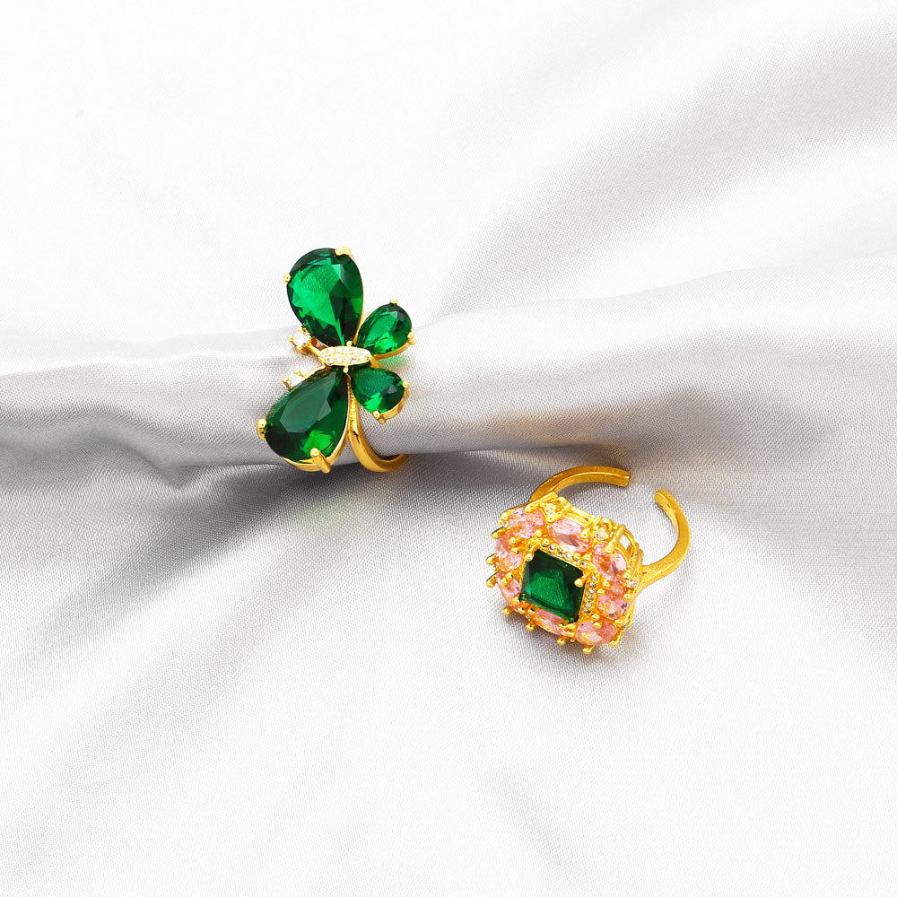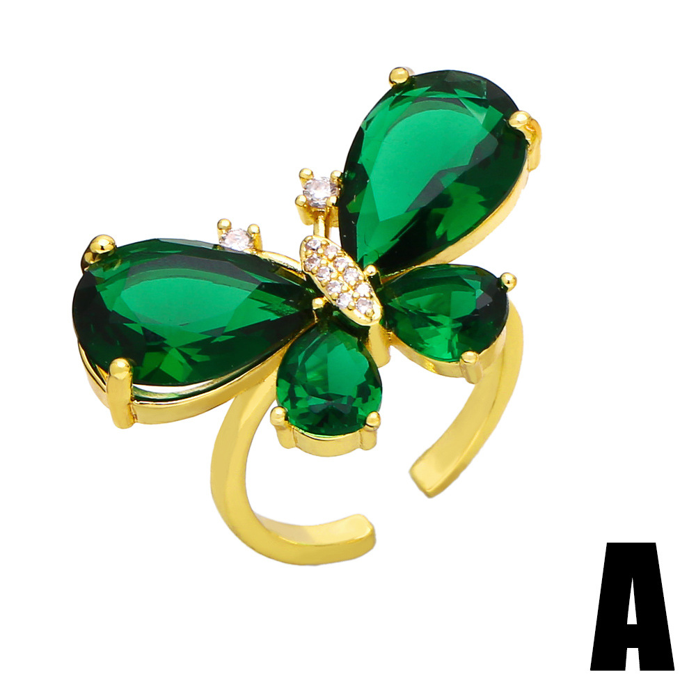 Clearance European and American popular flash diamond colored zircon flower ring female versatile butterfly open ring hand jewelry rir51