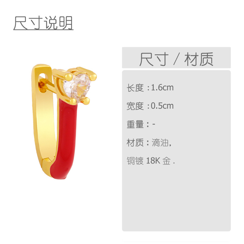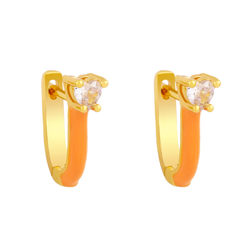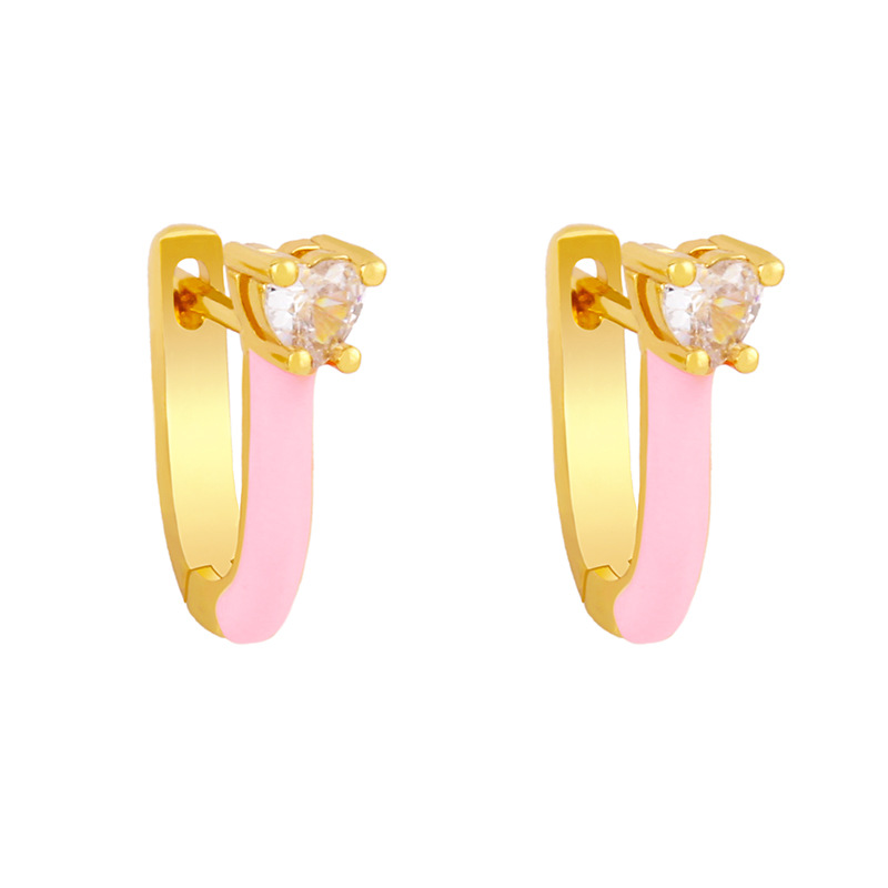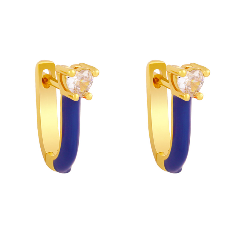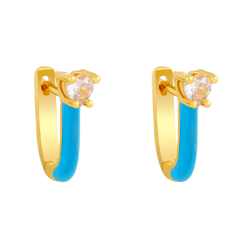 Clearance European and American popular jewelry candy color oil drop U-shaped earrings earrings sweet love zircon earrings female erx96