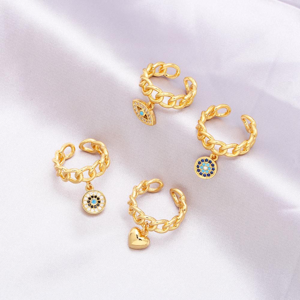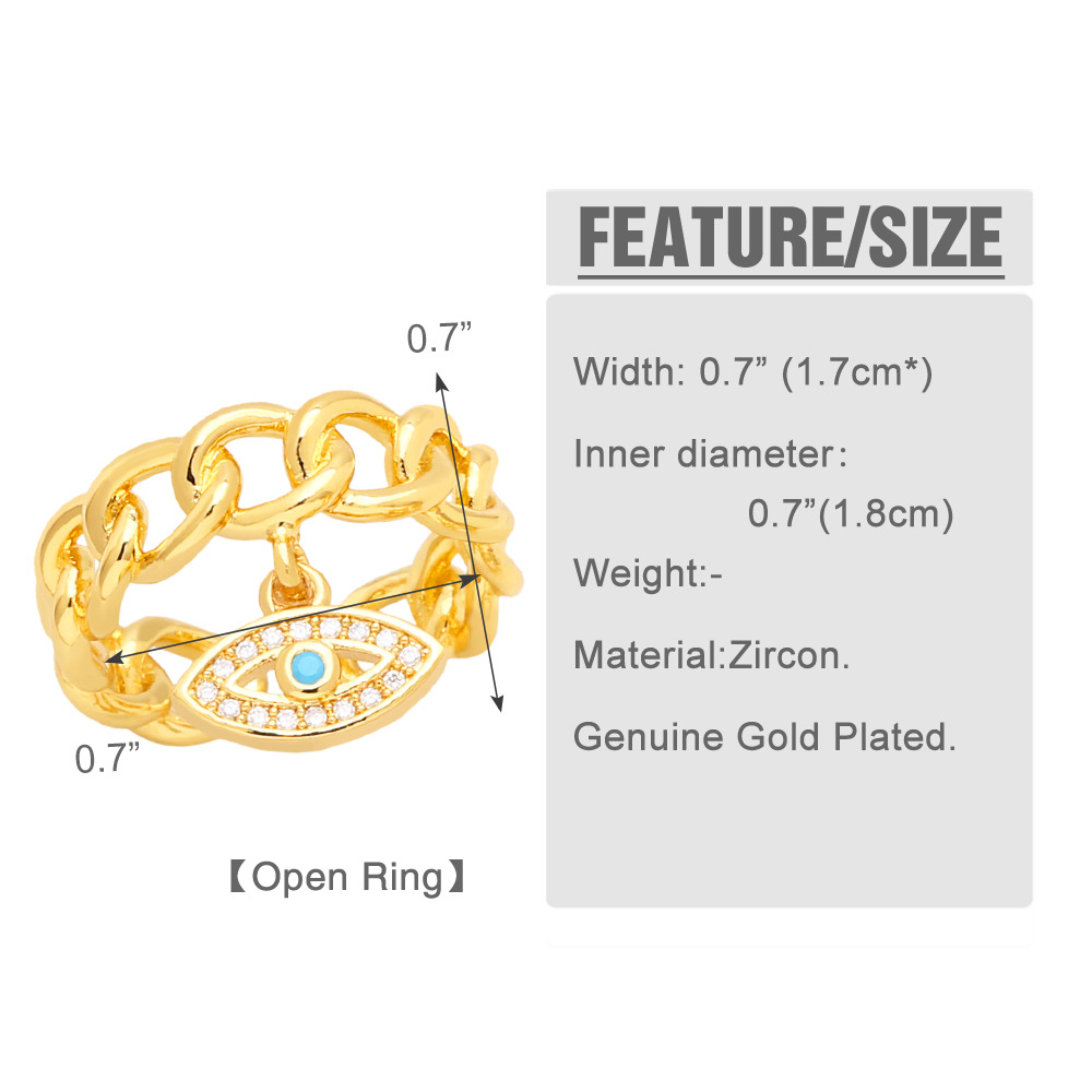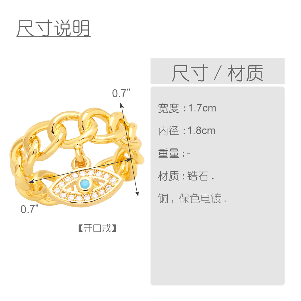 Clearance European and American punk hip-hop jewelry chain ring female personality eye pendant open ring rir74
