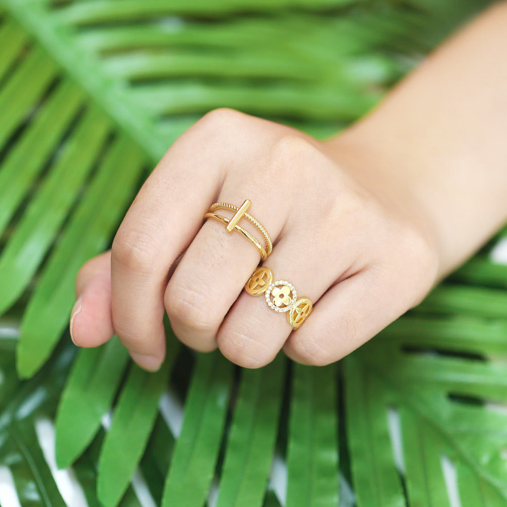 European and American luxury design ring fashionable temperament horse eye zircon ring multi-layer hollow design index finger ring