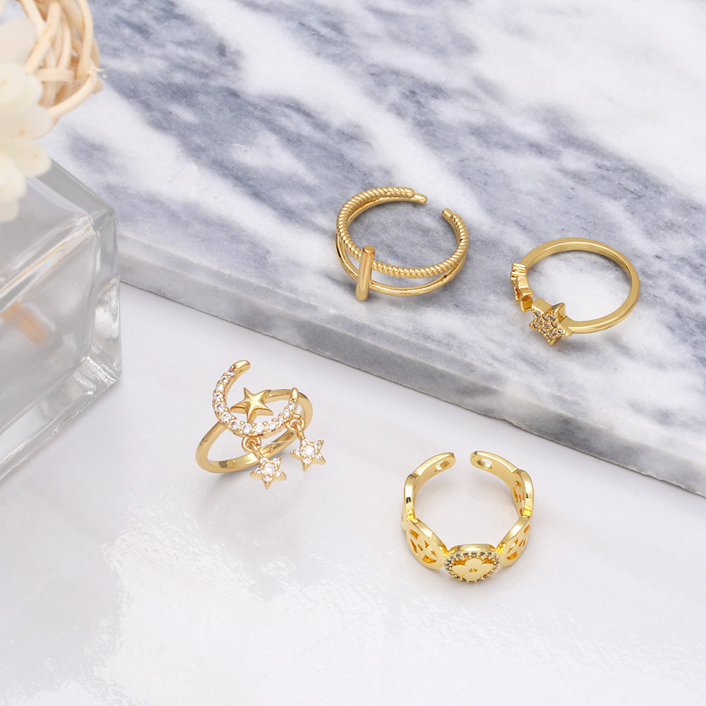 Clearance European and American retro cold style open ring female personality moon star ring net red tail ring rip38
