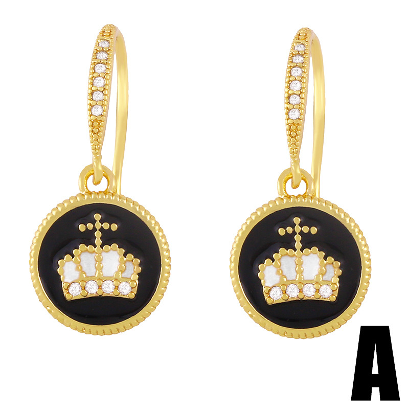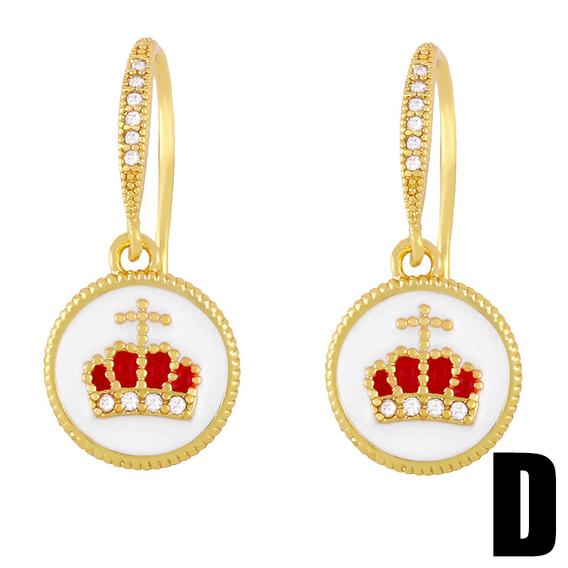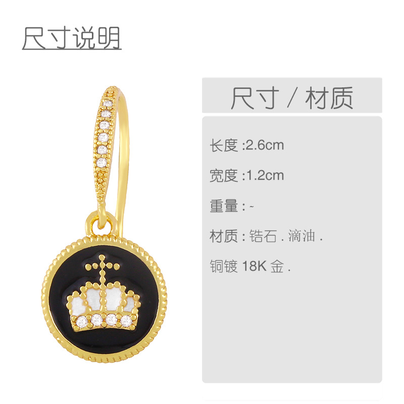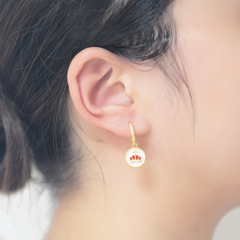 Clearance European and American retro crown earrings cute personality childlike round card love net red diamond ear hook erx65