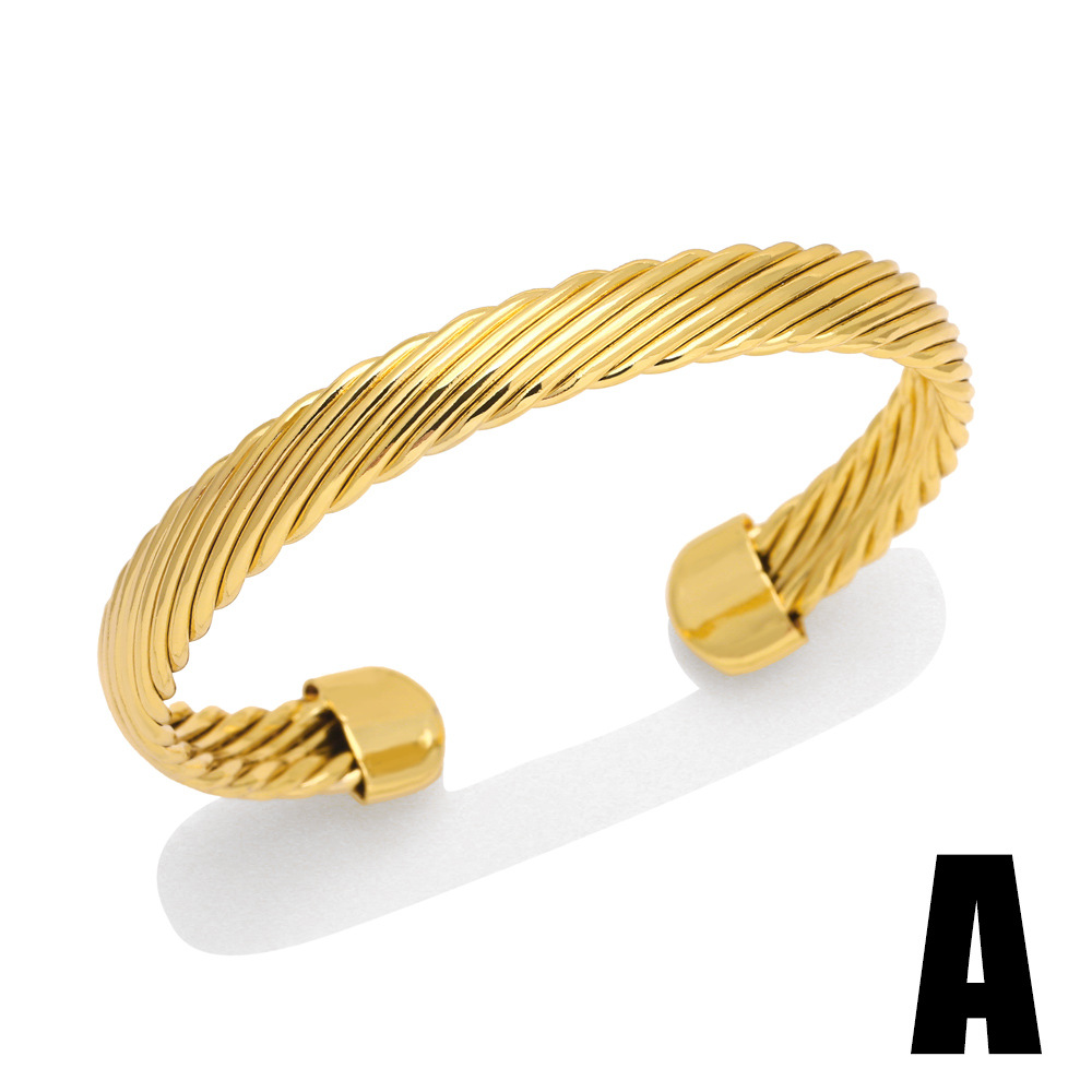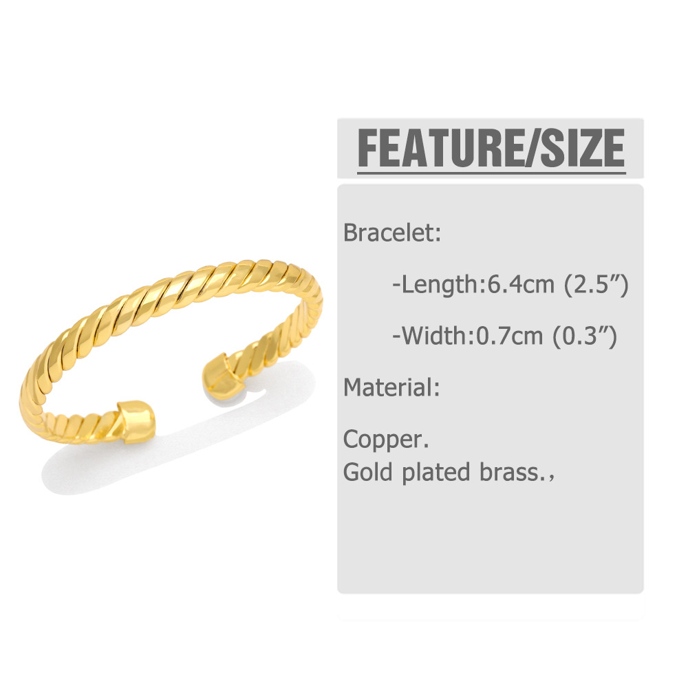Clearance European and American retro open bracelet copper plated 18K gold hip-hop punk geometric winding twist bracelet female brk53