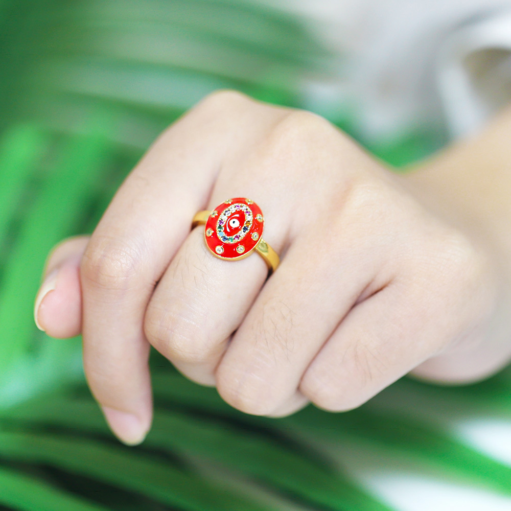 Clearance European and American ring micro-inlaid zircon open index finger ring Bohemian style color oil drop jewelry rin51