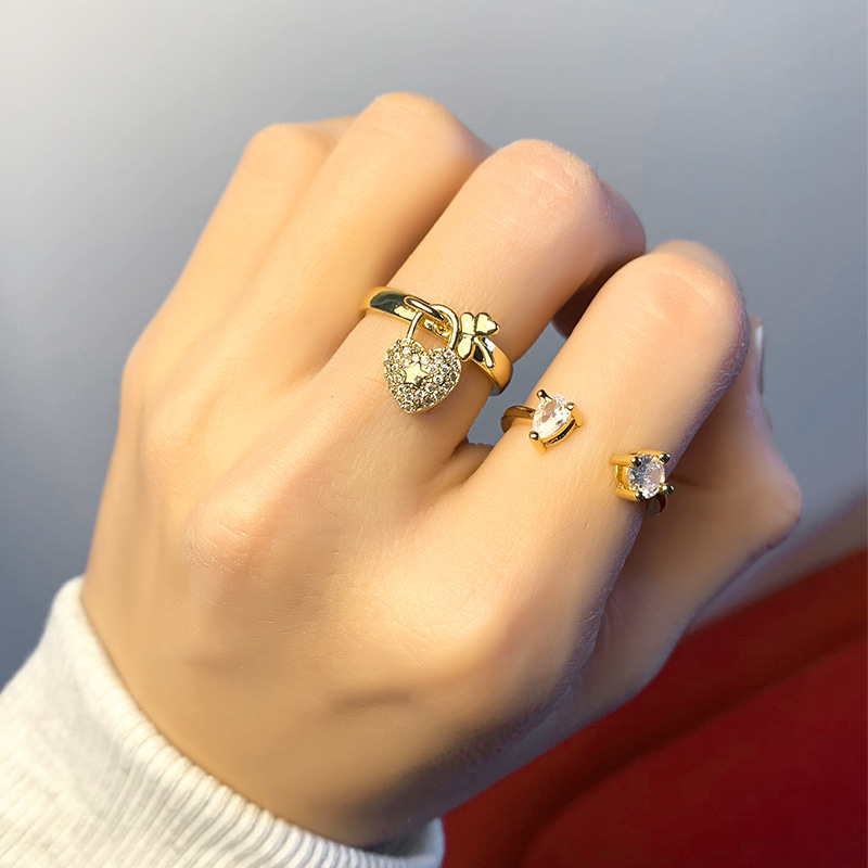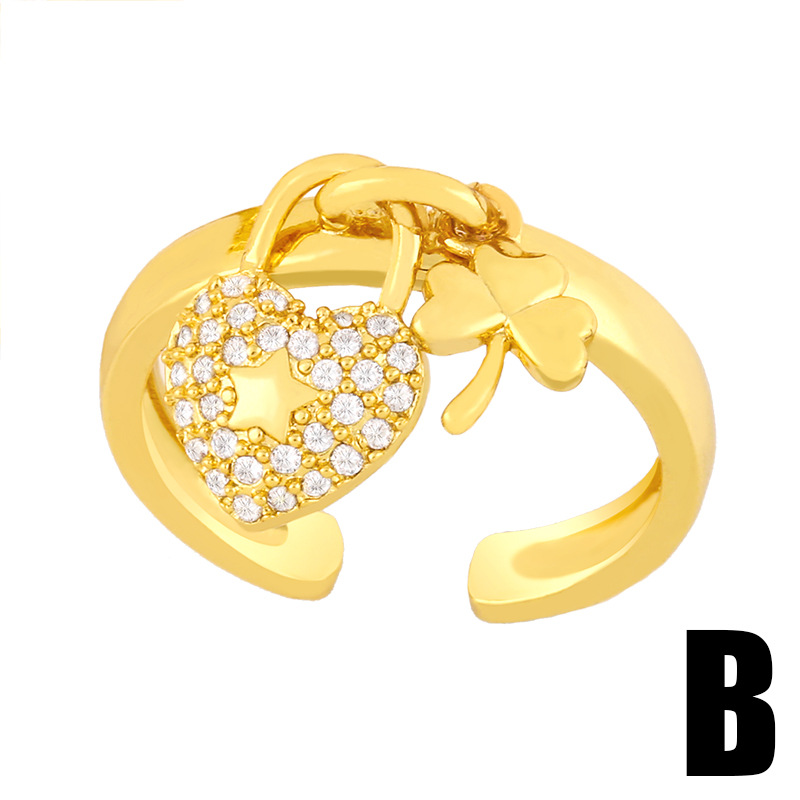 Clearance European and American simple ring female ring student jewelry fashion clover heart-shaped index finger open ring rik20