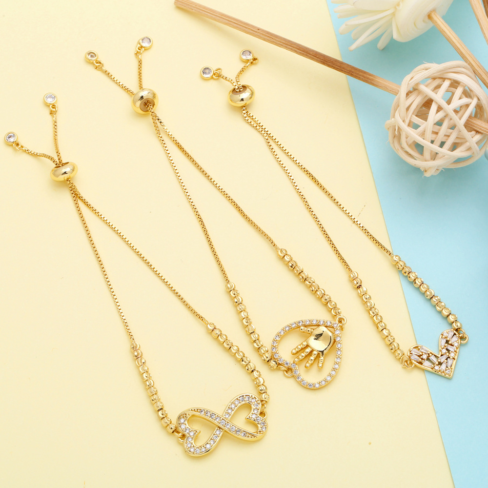 Clearance European and American simple style love zircon bracelet female temperament versatile heart-shaped adjustable pull-out bracelet brc27