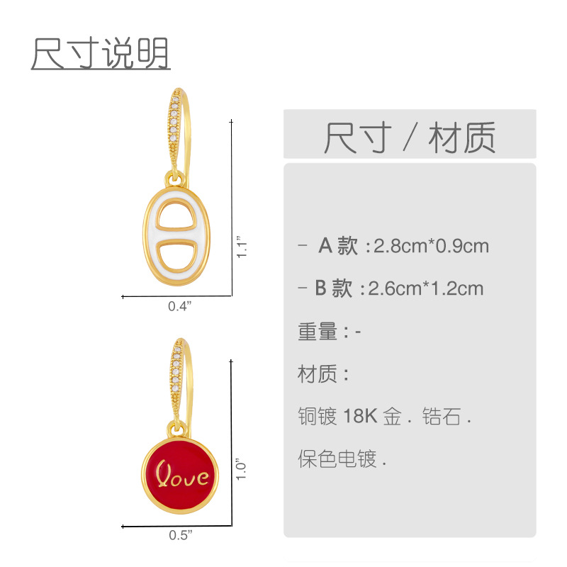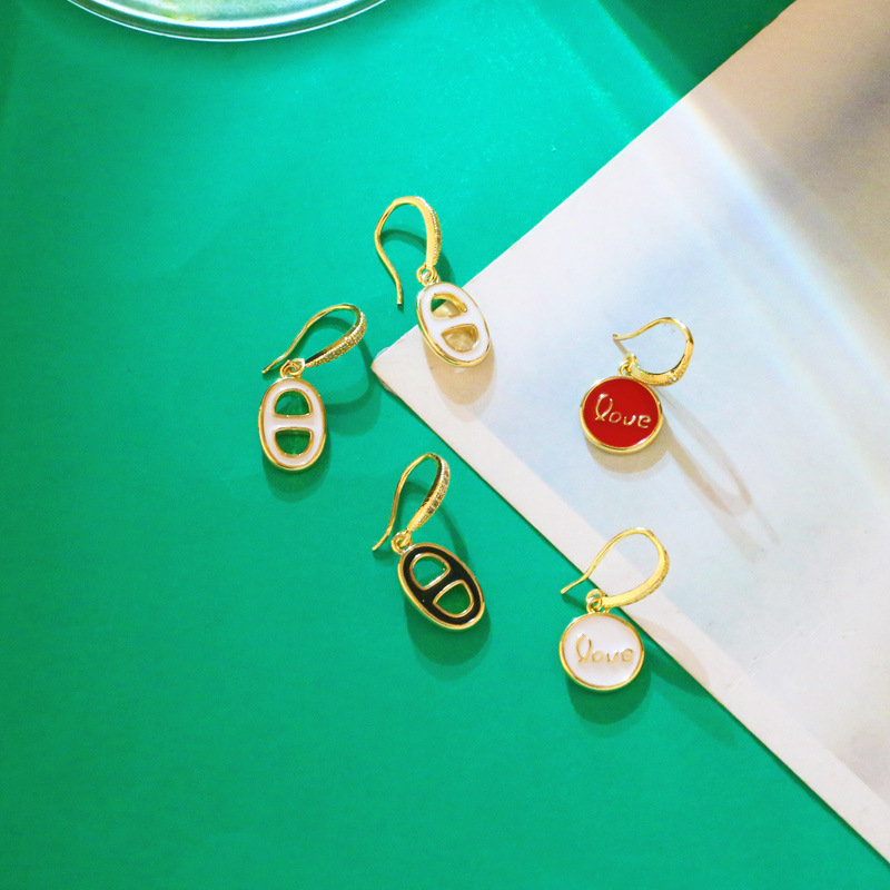Clearance European and American small simple pig nose earrings ear hook retro geometric letters love net red earrings erx74