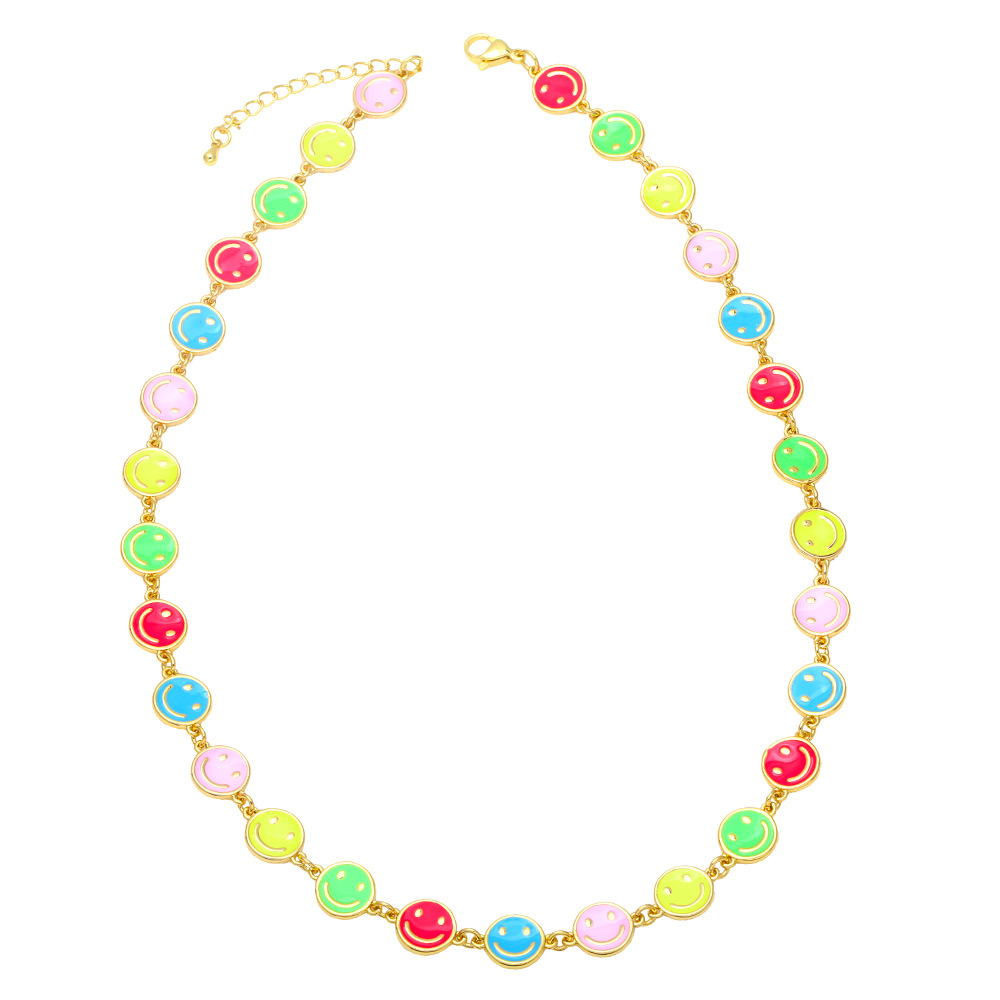 Clearance European and American smiley face necklace female smile niche design clavicle chain net celebrity jewelry nkb079